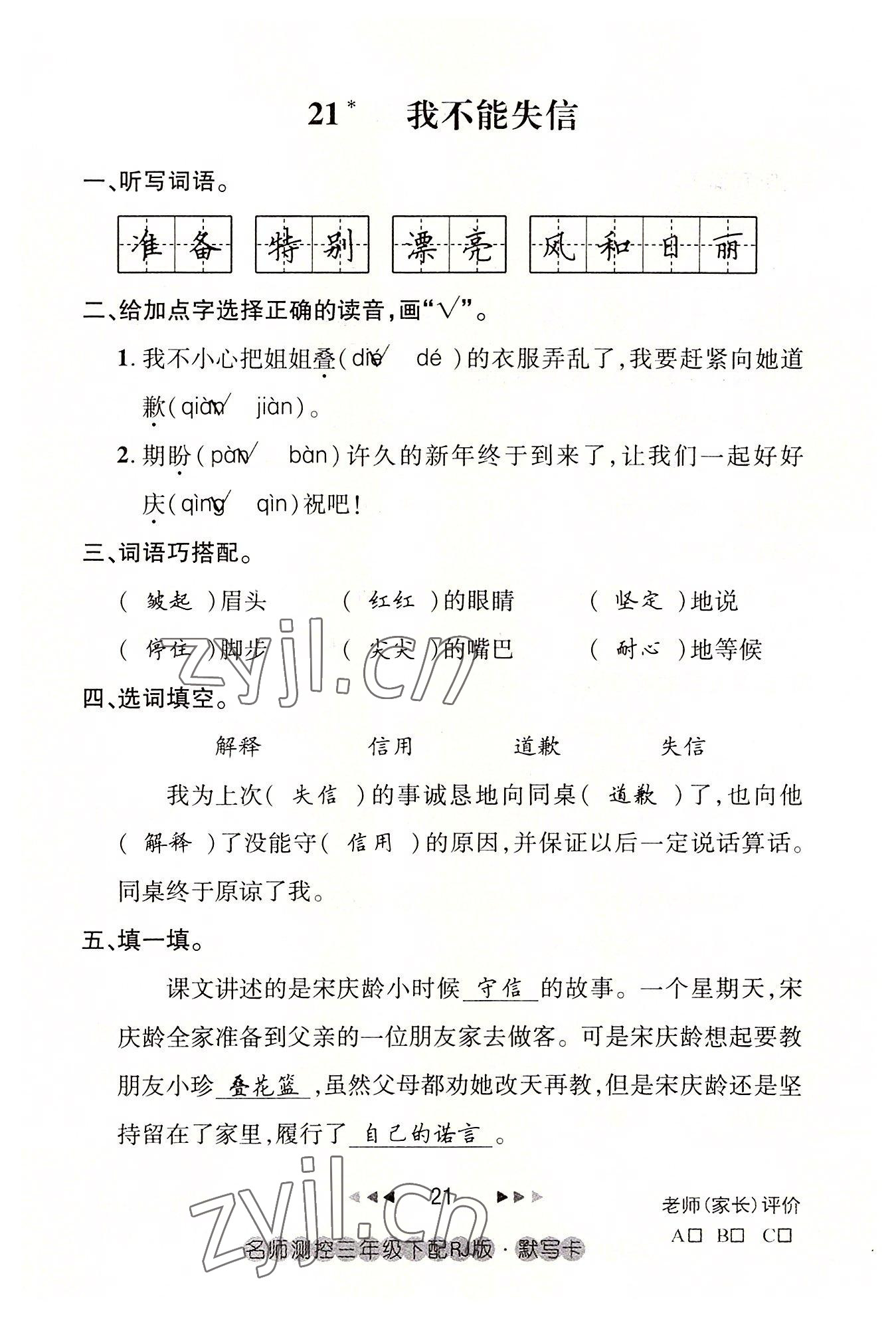 注:目前有些书本章节名称可能整理的还不是很完善,但都是按照顺序排列的,请同学们按照顺序仔细查找。练习册 2022年名师测控三年级语文下册人教版鄂黄专版 答案主要是用来给同学们做完题方便对答案用的,请勿直接抄袭。