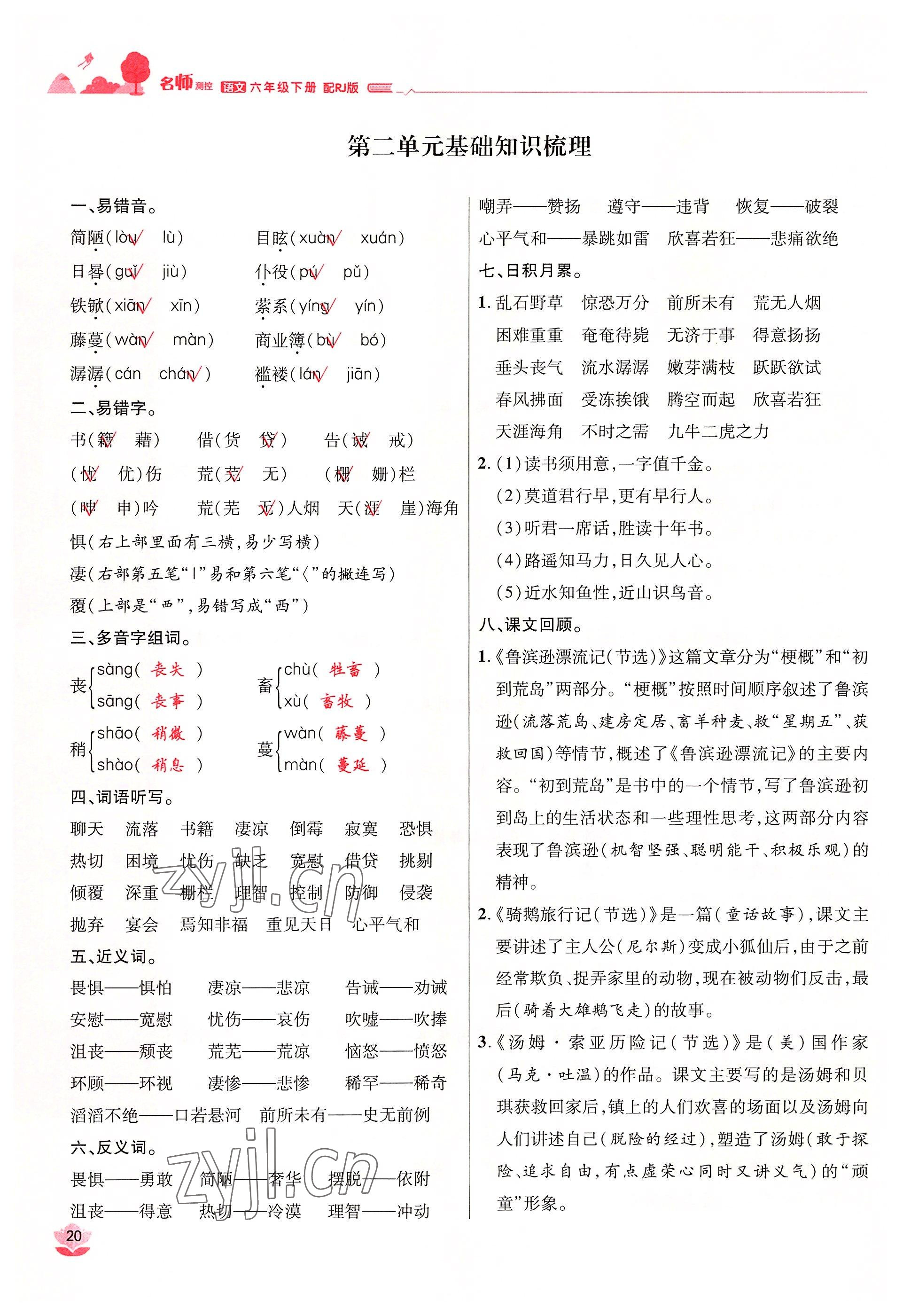 注:目前有些书本章节名称可能整理的还不是很完善,但都是按照顺序排列的,请同学们按照顺序仔细查找。练习册 2022年名师测控六年级语文下册人教版鄂黄专版 答案主要是用来给同学们做完题方便对答案用的,请勿直接抄袭。