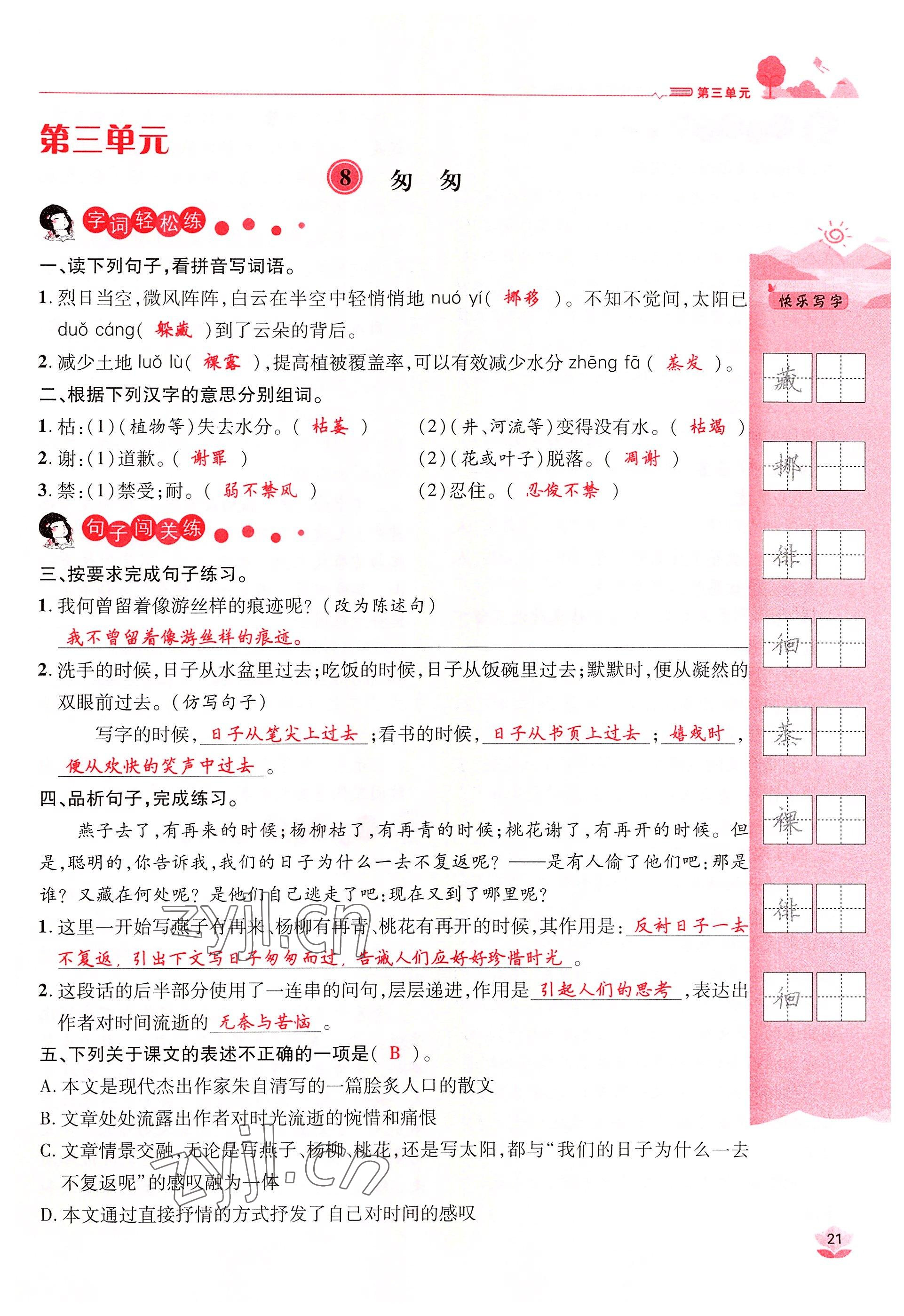 注:目前有些书本章节名称可能整理的还不是很完善,但都是按照顺序排列的,请同学们按照顺序仔细查找。练习册 2022年名师测控六年级语文下册人教版鄂黄专版 答案主要是用来给同学们做完题方便对答案用的,请勿直接抄袭。