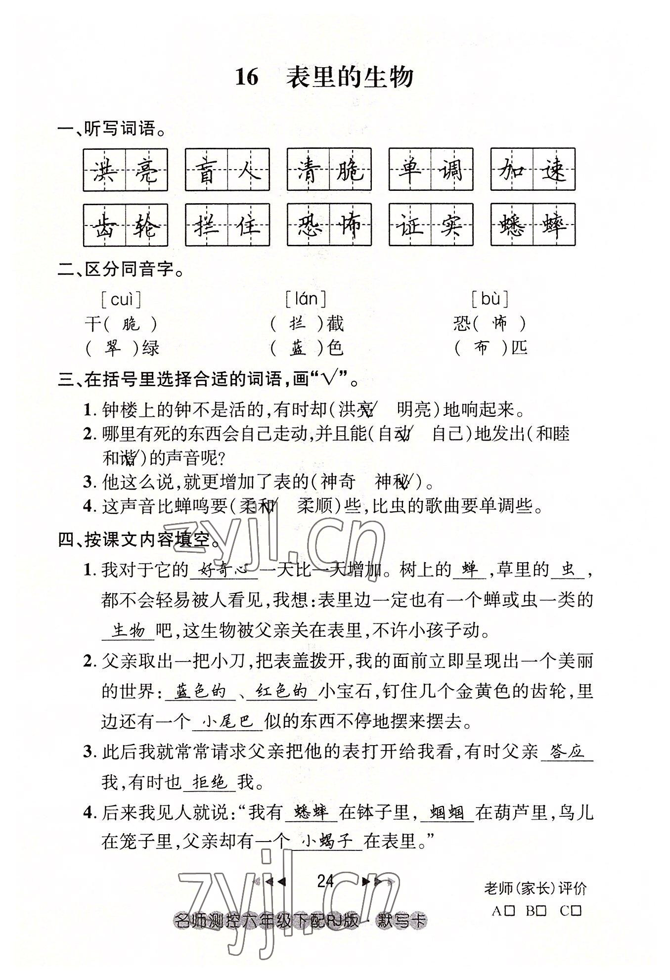 2022年名师测控六年级语文下册人教版鄂黄专版