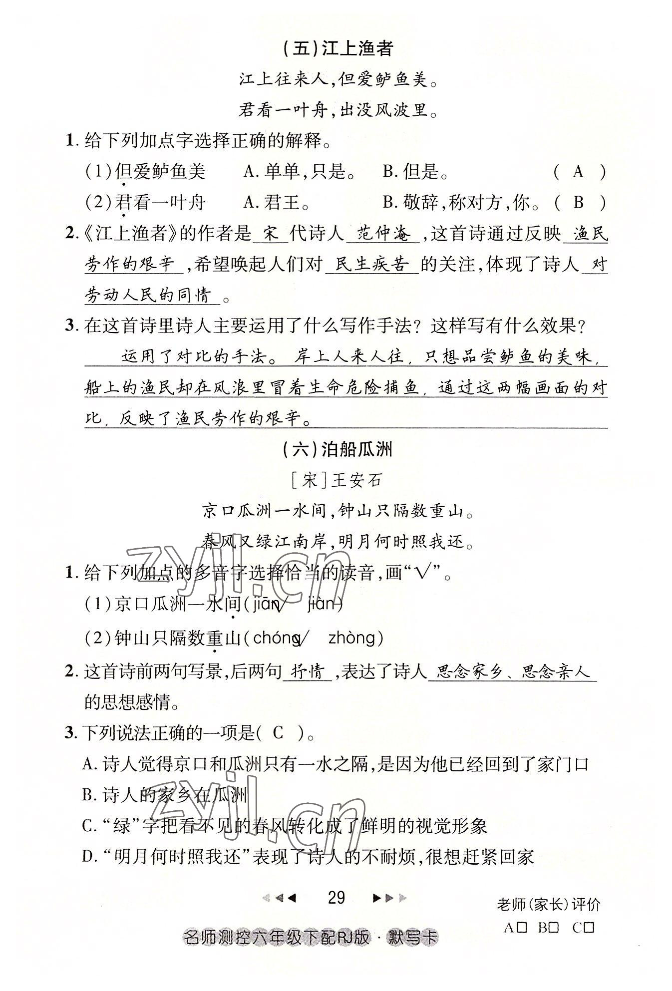 注:目前有些书本章节名称可能整理的还不是很完善,但都是按照顺序排列的,请同学们按照顺序仔细查找。练习册 2022年名师测控六年级语文下册人教版鄂黄专版 答案主要是用来给同学们做完题方便对答案用的,请勿直接抄袭。