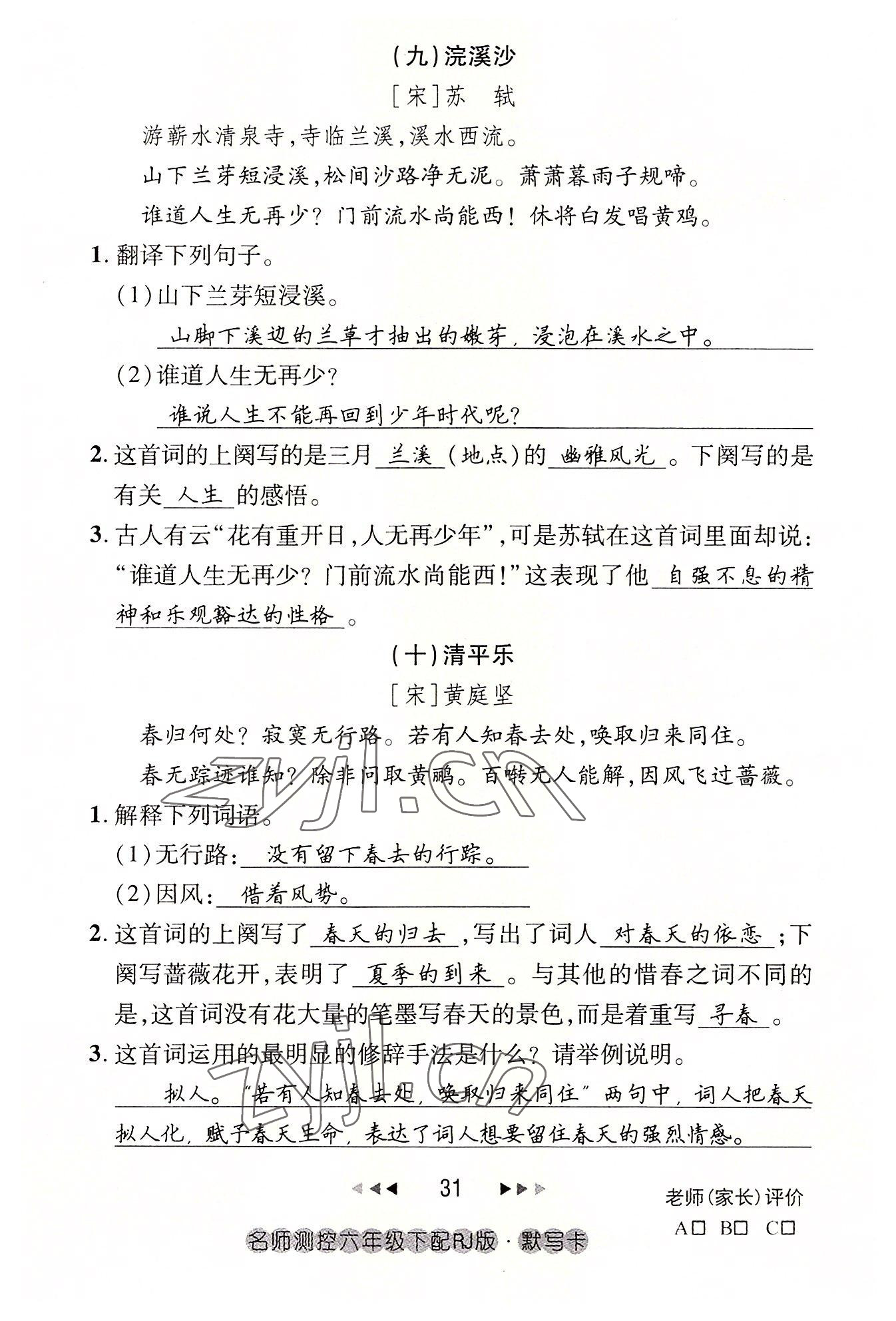 2022年名师测控六年级语文下册人教版鄂黄专版