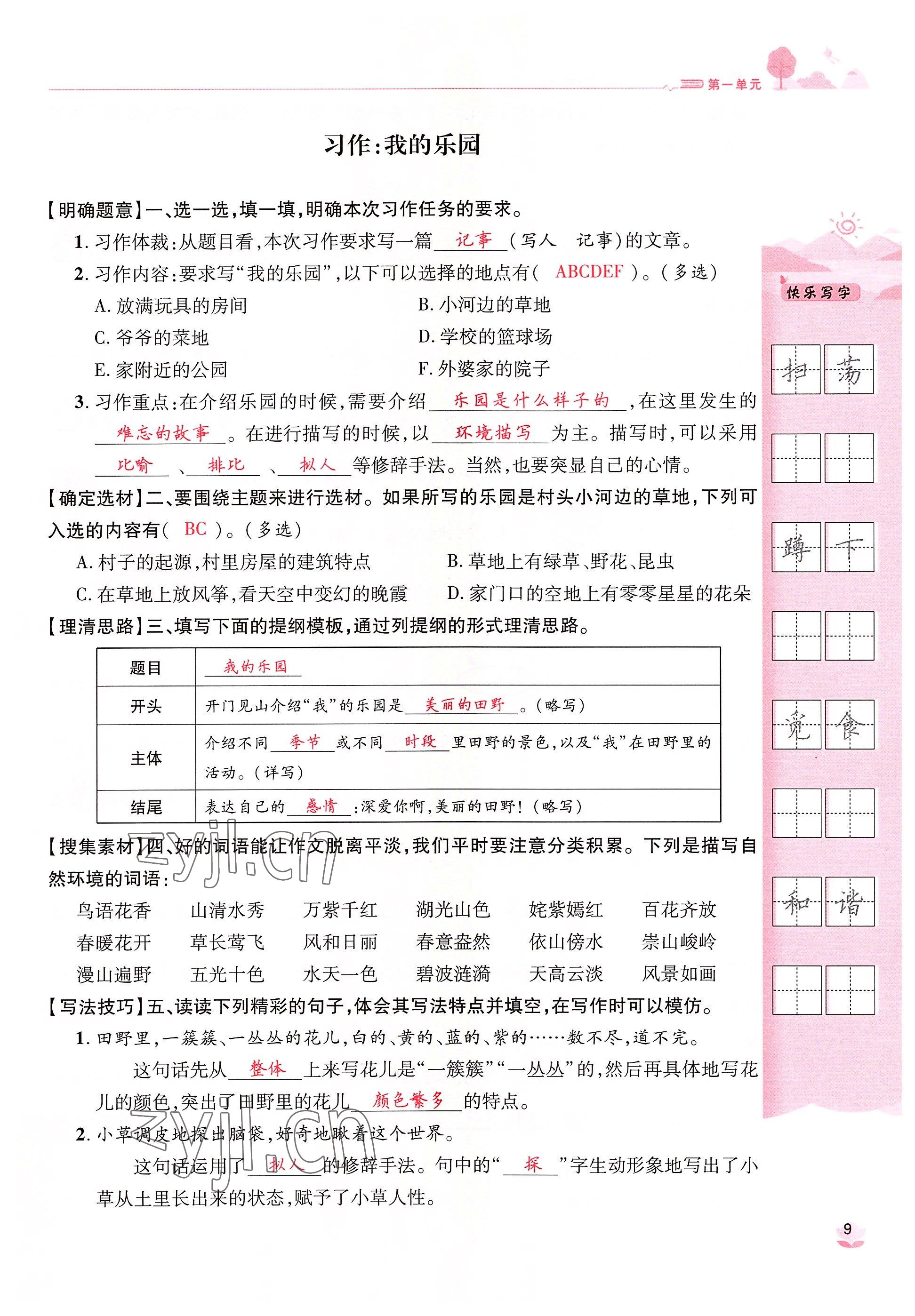 注:目前有些书本章节名称可能整理的还不是很完善,但都是按照顺序排列的,请同学们按照顺序仔细查找。练习册 2022年名师测控四年级语文下册人教版鄂黄专版 答案主要是用来给同学们做完题方便对答案用的,请勿直接抄袭。