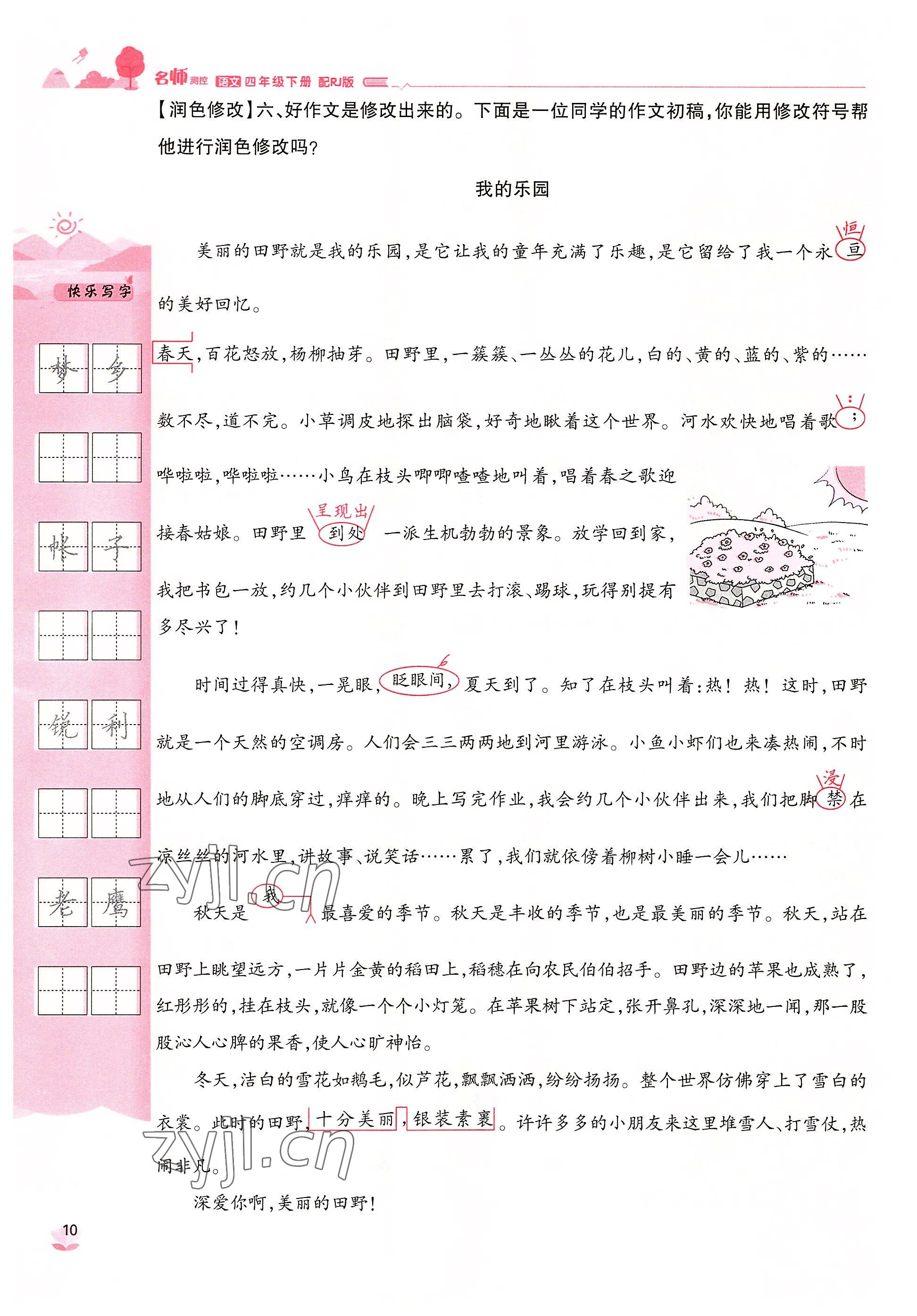 2022年名师测控四年级语文下册人教版鄂黄专版