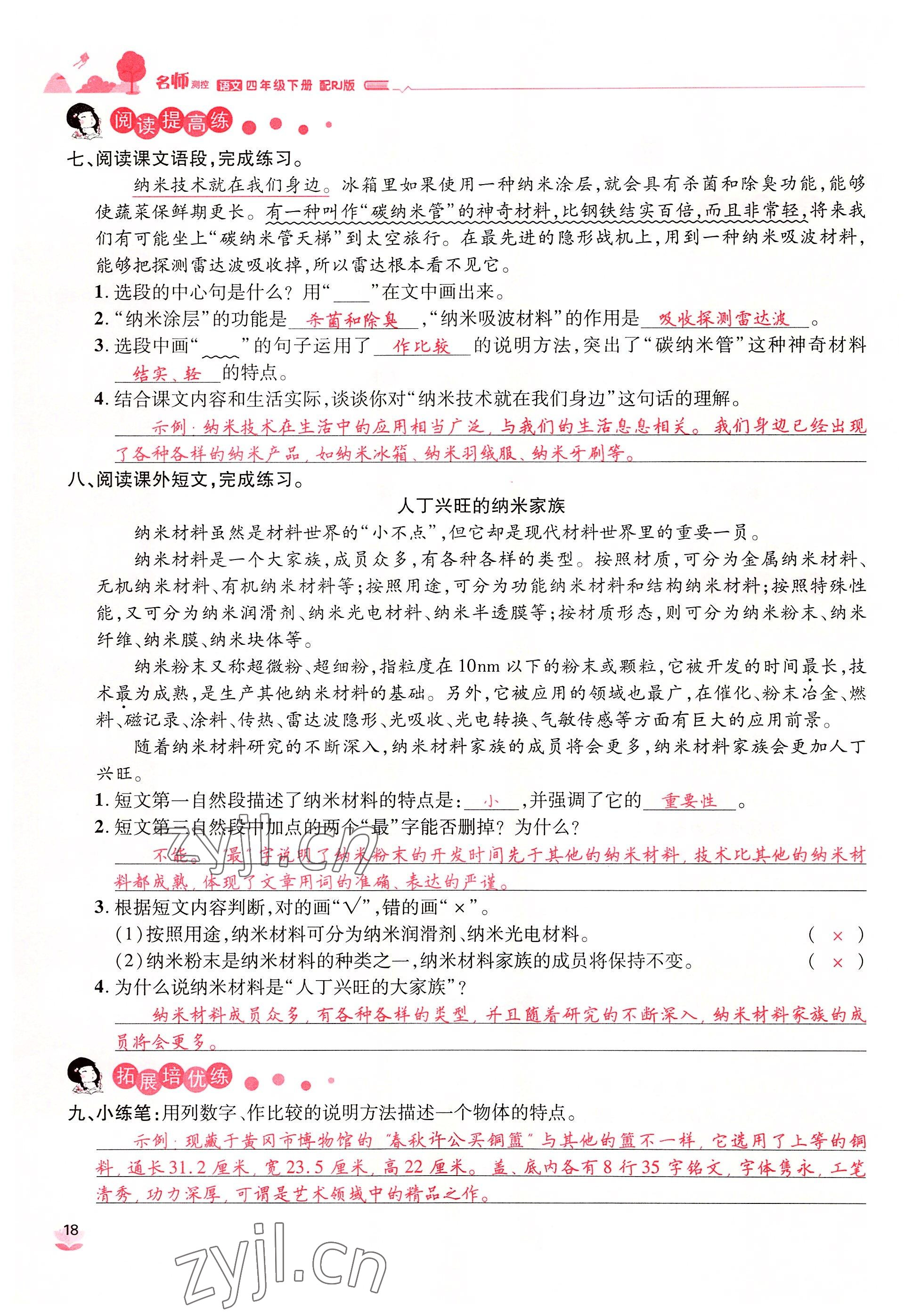 注:目前有些书本章节名称可能整理的还不是很完善,但都是按照顺序排列的,请同学们按照顺序仔细查找。练习册 2022年名师测控四年级语文下册人教版鄂黄专版 答案主要是用来给同学们做完题方便对答案用的,请勿直接抄袭。