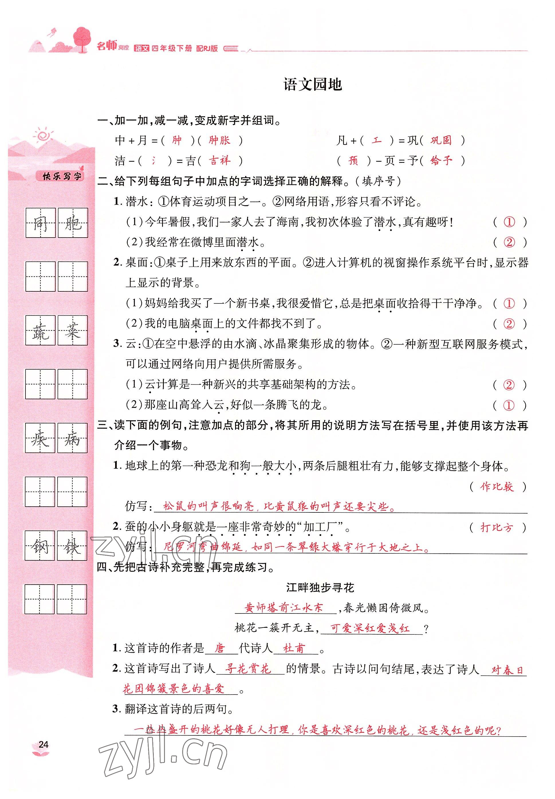 2022年名师测控四年级语文下册人教版鄂黄专版