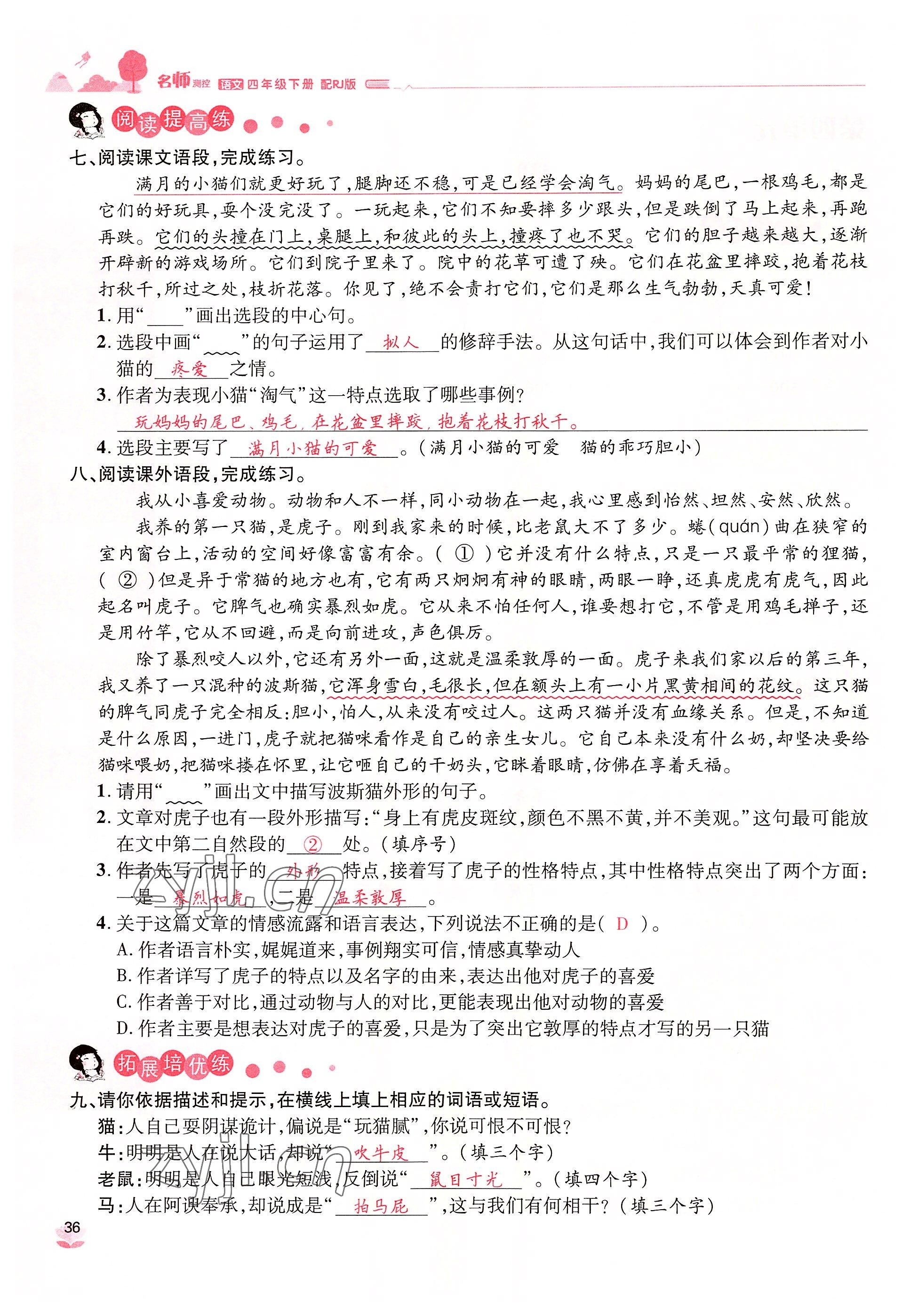 注:目前有些书本章节名称可能整理的还不是很完善,但都是按照顺序排列的,请同学们按照顺序仔细查找。练习册 2022年名师测控四年级语文下册人教版鄂黄专版 答案主要是用来给同学们做完题方便对答案用的,请勿直接抄袭。