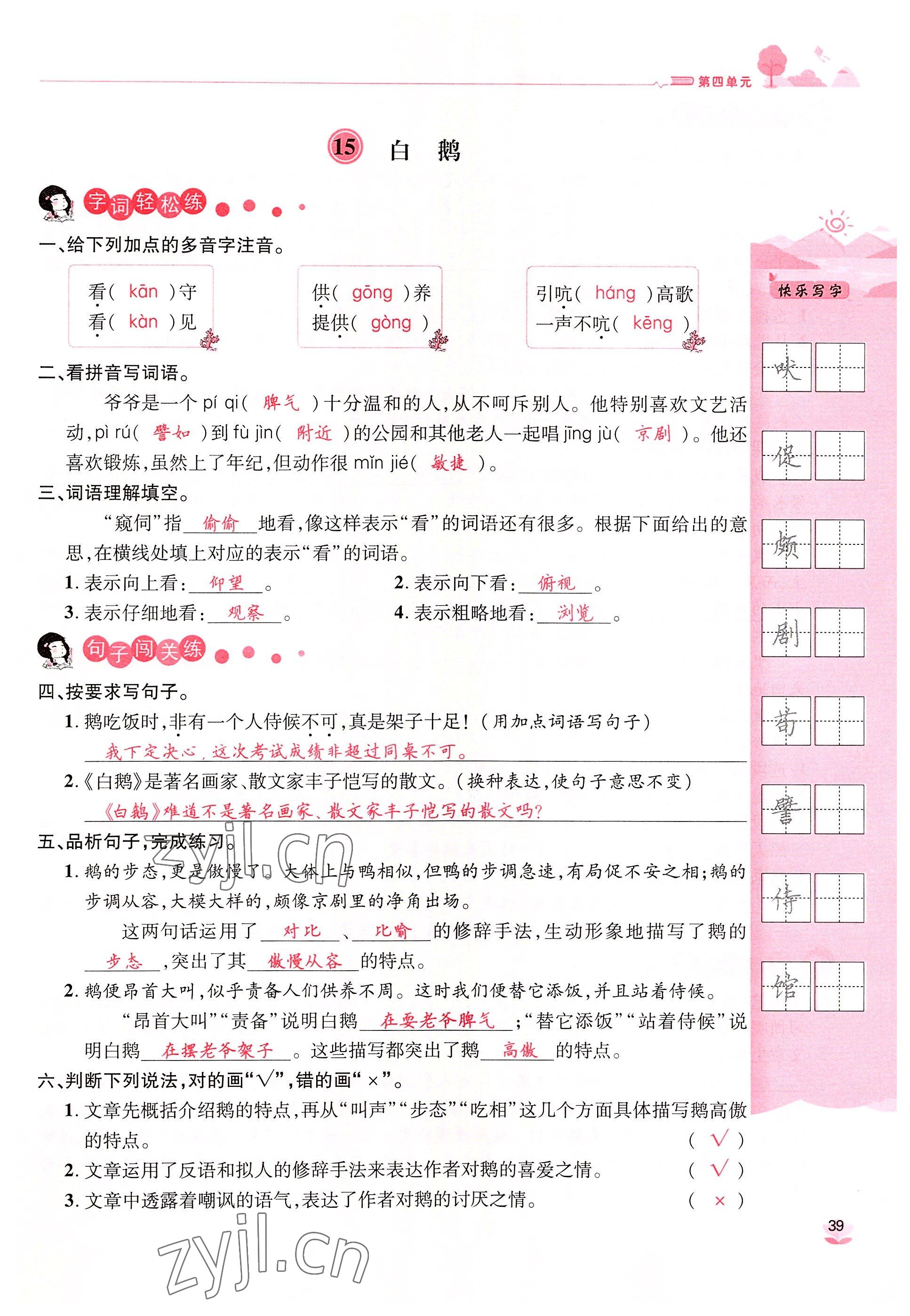 注:目前有些书本章节名称可能整理的还不是很完善,但都是按照顺序排列的,请同学们按照顺序仔细查找。练习册 2022年名师测控四年级语文下册人教版鄂黄专版 答案主要是用来给同学们做完题方便对答案用的,请勿直接抄袭。