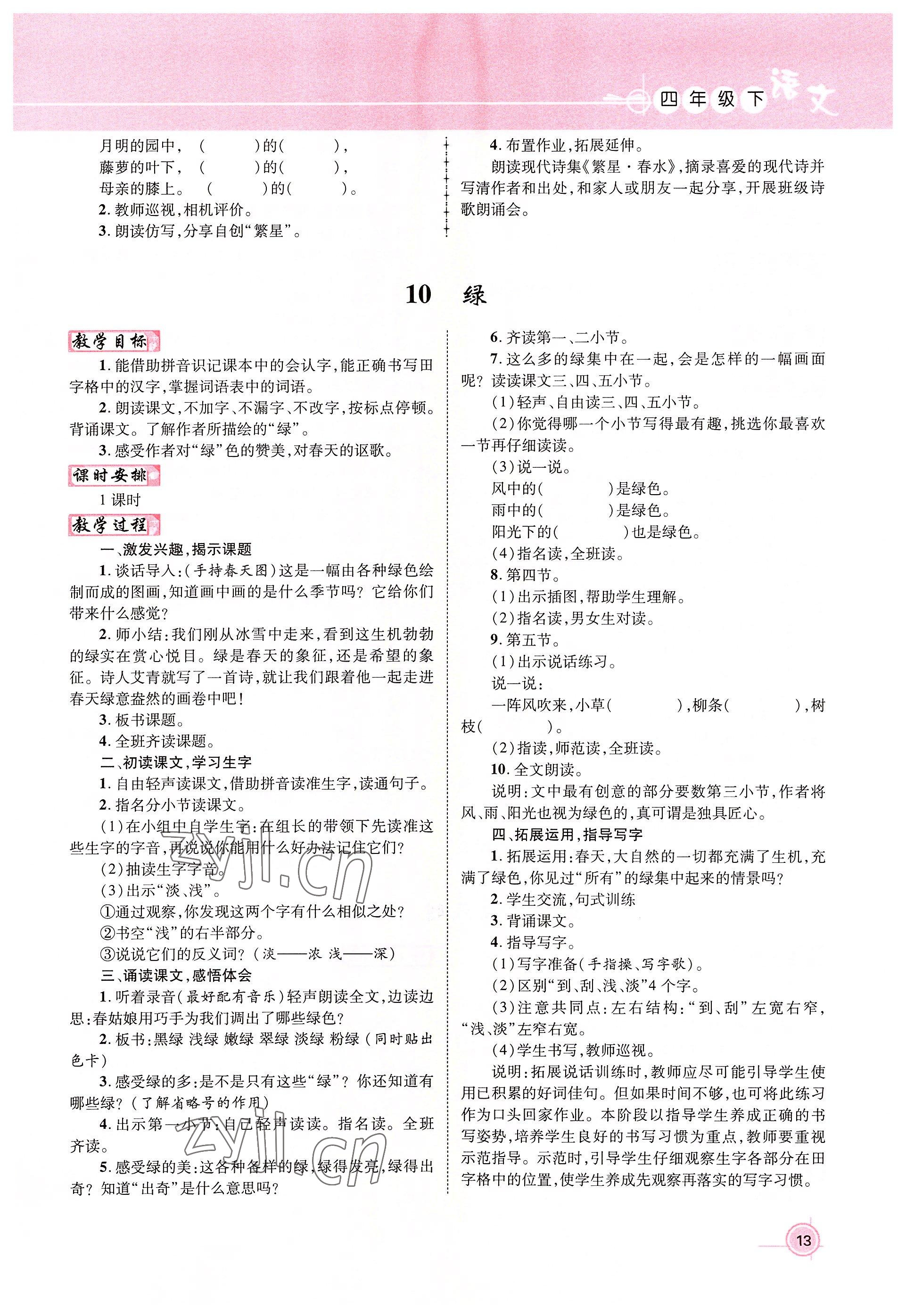 2022年名师测控四年级语文下册人教版鄂黄专版