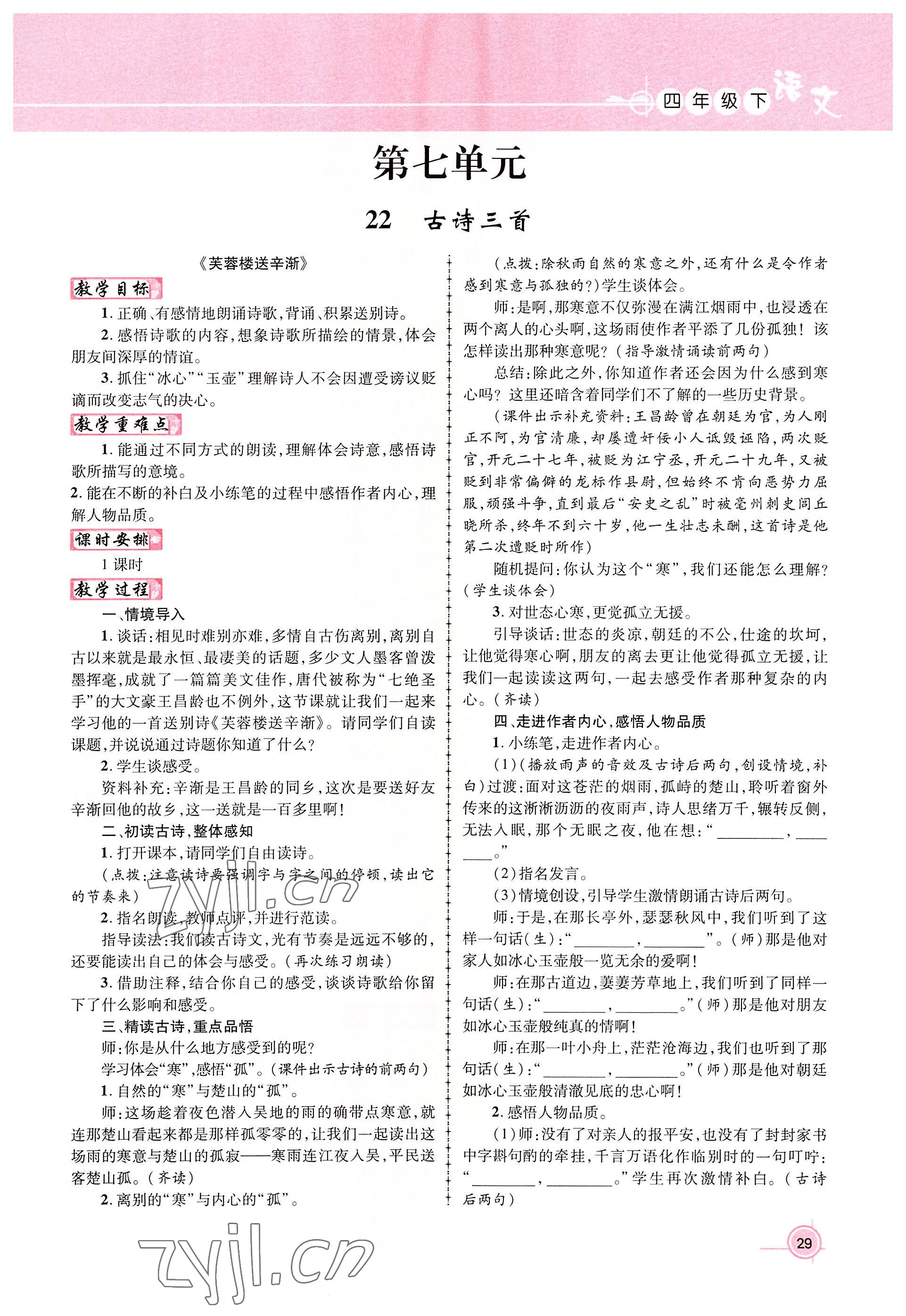 2022年名师测控四年级语文下册人教版鄂黄专版