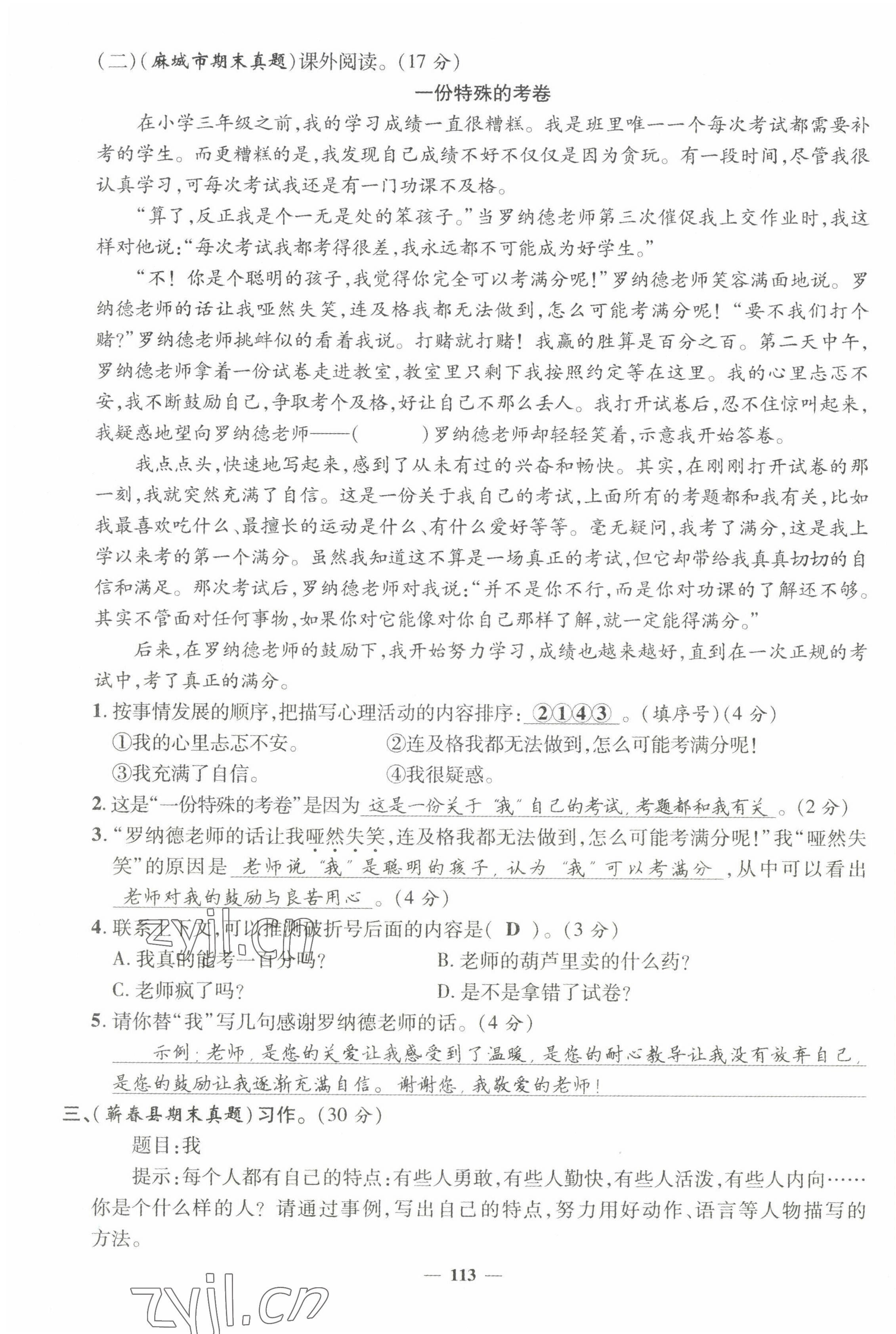 注:目前有些书本章节名称可能整理的还不是很完善,但都是按照顺序排列的,请同学们按照顺序仔细查找。练习册 2022年名师测控四年级语文下册人教版鄂黄专版 答案主要是用来给同学们做完题方便对答案用的,请勿直接抄袭。