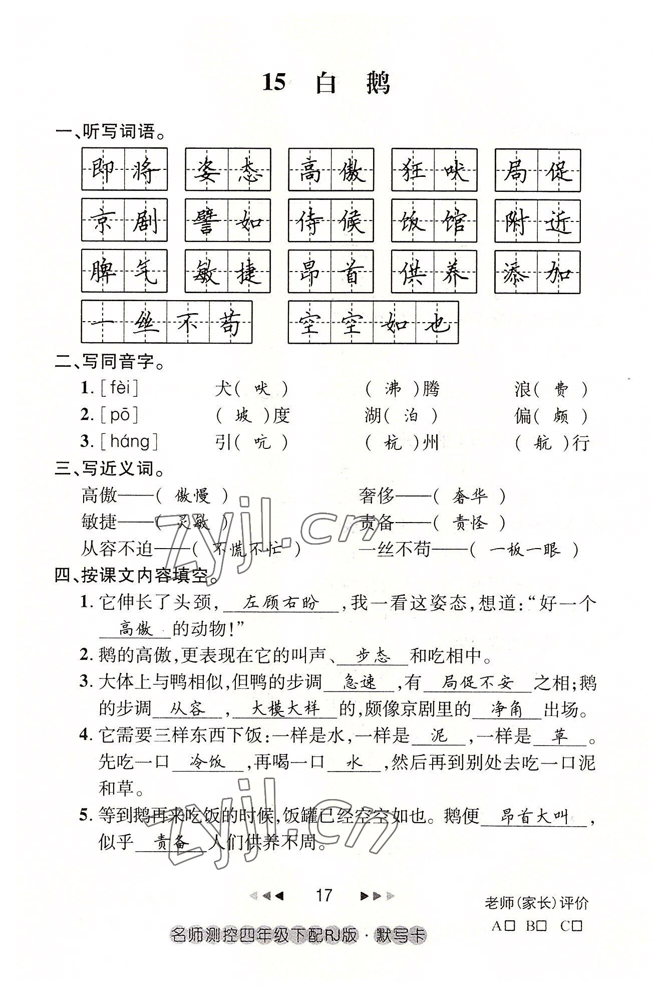 2022年名师测控四年级语文下册人教版鄂黄专版