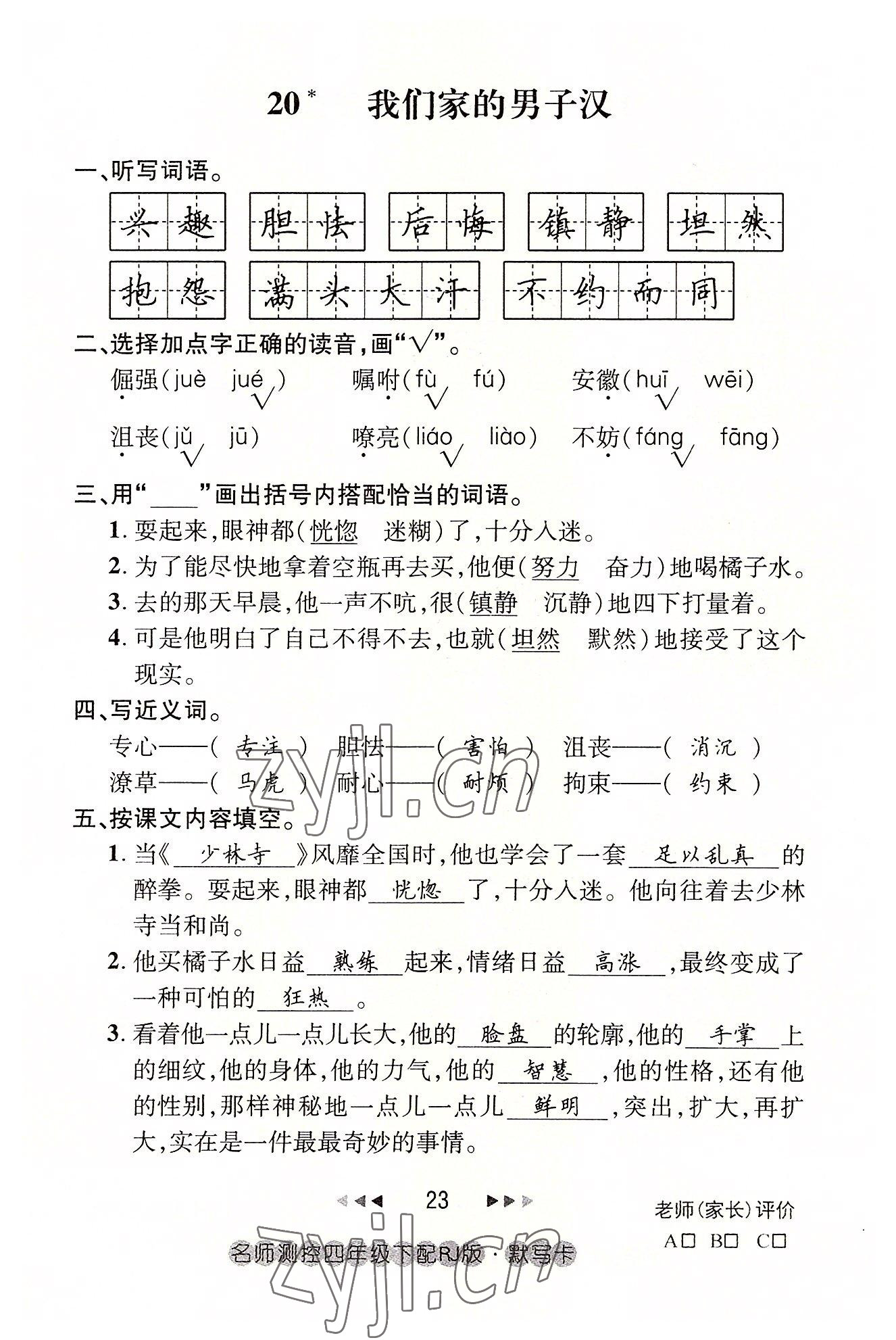 2022年名师测控四年级语文下册人教版鄂黄专版