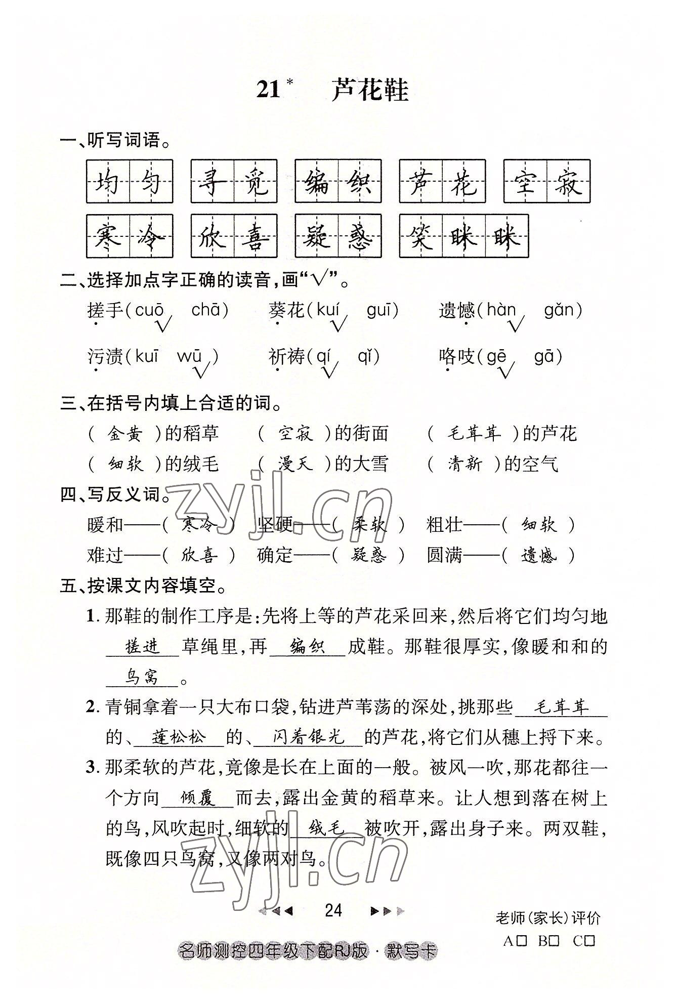 2022年名师测控四年级语文下册人教版鄂黄专版