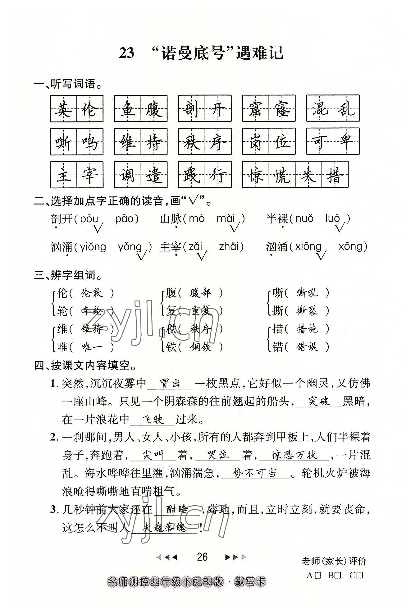 2022年名师测控四年级语文下册人教版鄂黄专版