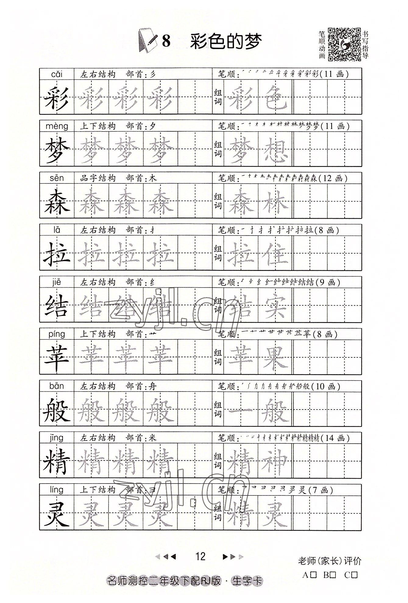 2022年名师测控二年级语文下册人教版鄂黄专版