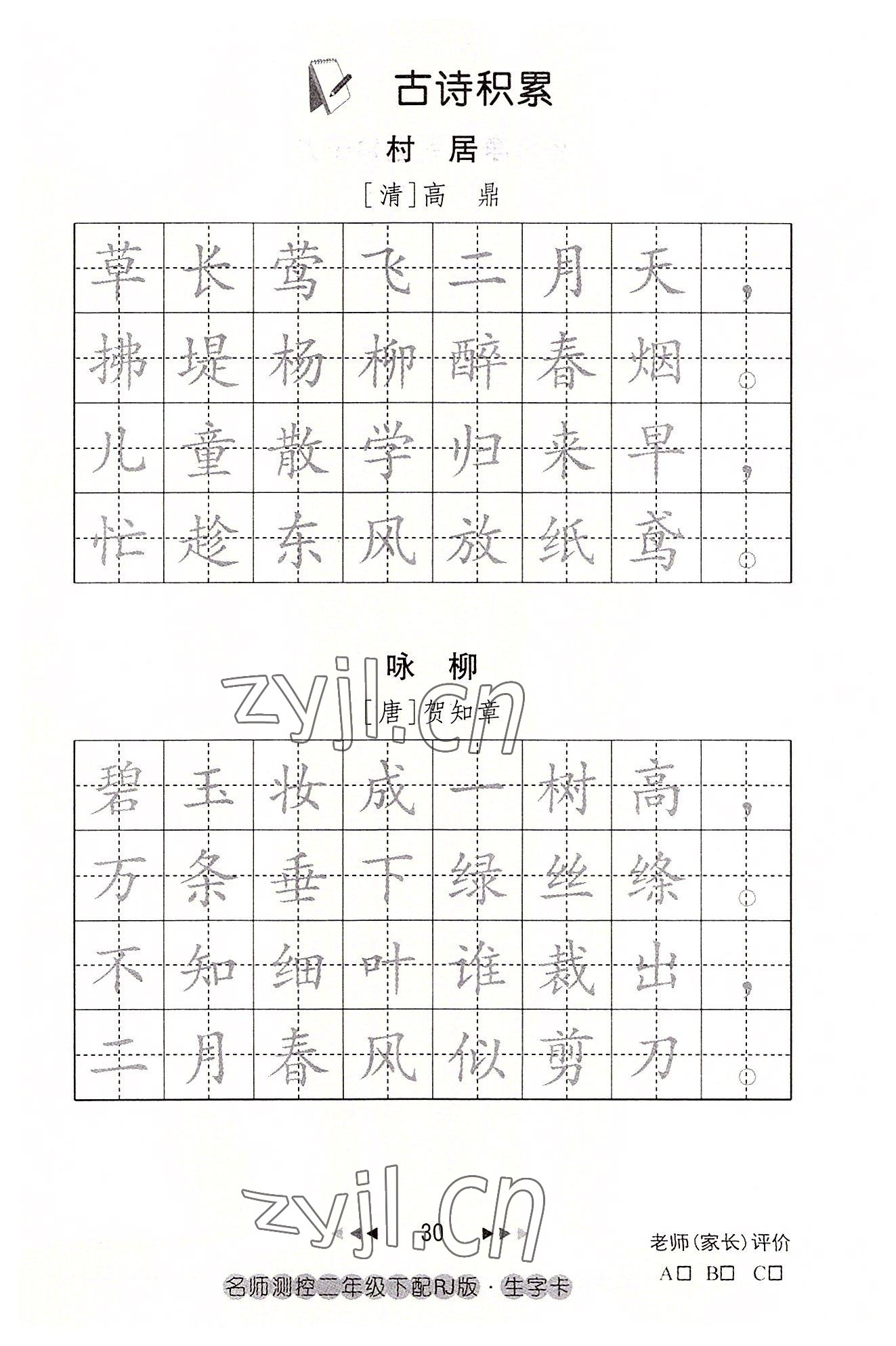 2022年名师测控二年级语文下册人教版鄂黄专版