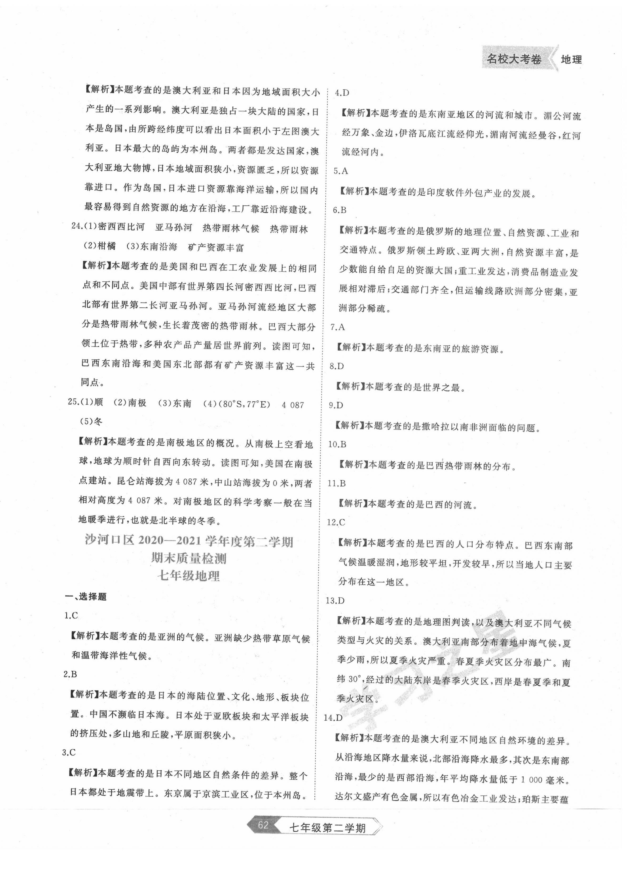 注:目前有些书本章节名称可能整理的还不是很完善,但都是按照顺序排列的,请同学们按照顺序仔细查找。练习册 2022年名校大考卷七年级地理下册人教版大连专版 答案主要是用来给同学们做完题方便对答案用的,请勿直接抄袭。