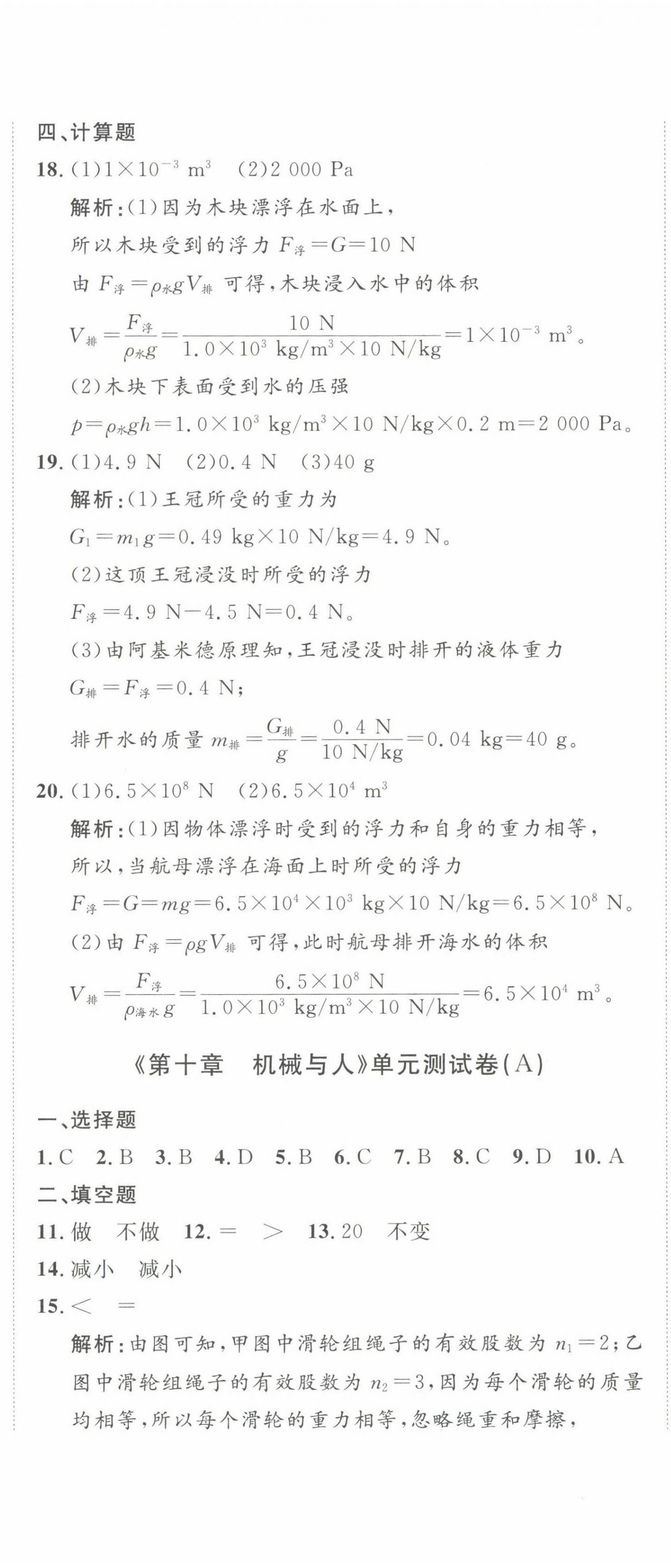 2022年伴你学同步练习册提优测试卷八年级物理下册沪科版