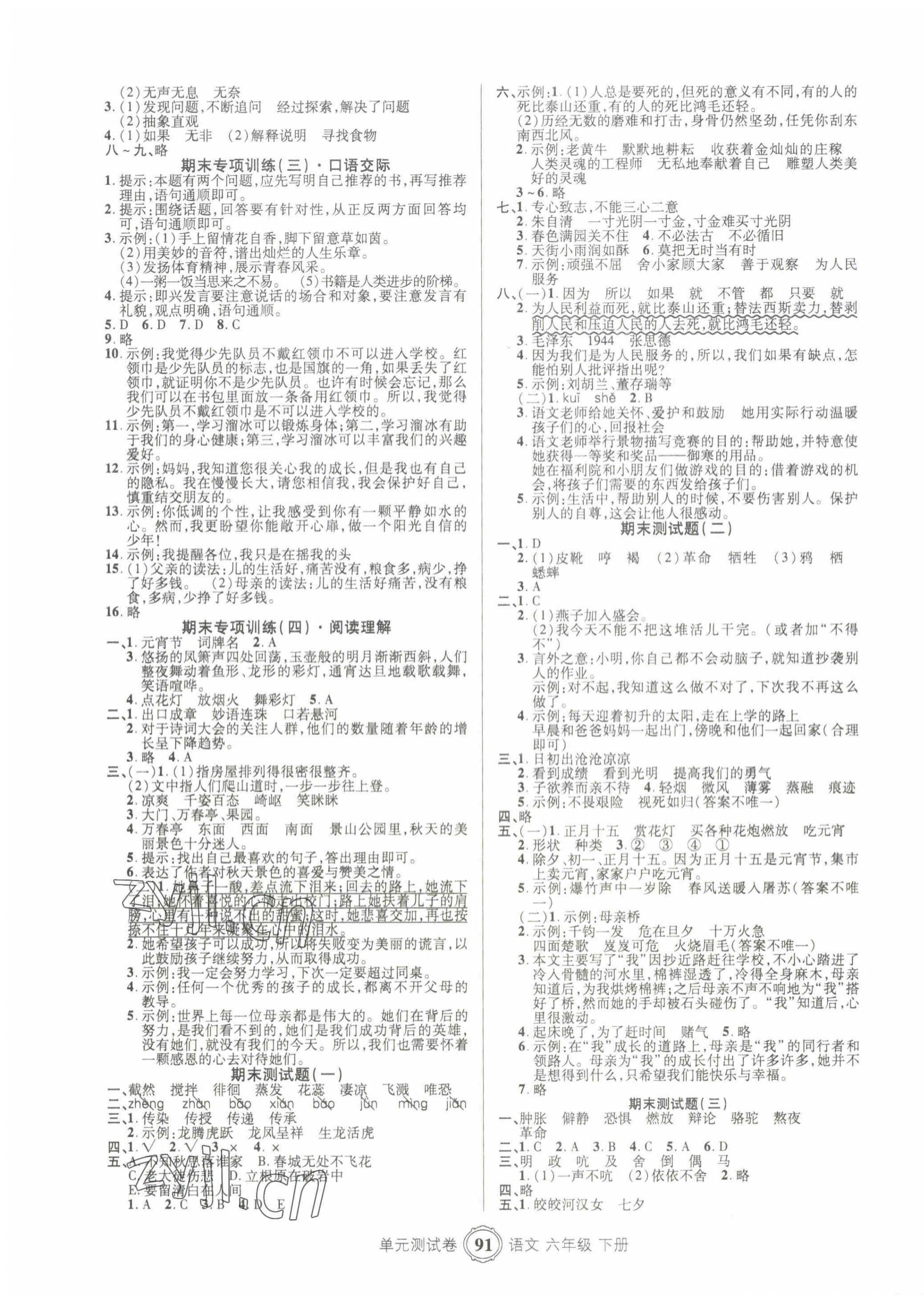 注:目前有些书本章节名称可能整理的还不是很完善,但都是按照顺序排列的,请同学们按照顺序仔细查找。练习册 2022年智慧通单元测试卷六年级语文下册人教版 答案主要是用来给同学们做完题方便对答案用的,请勿直接抄袭。