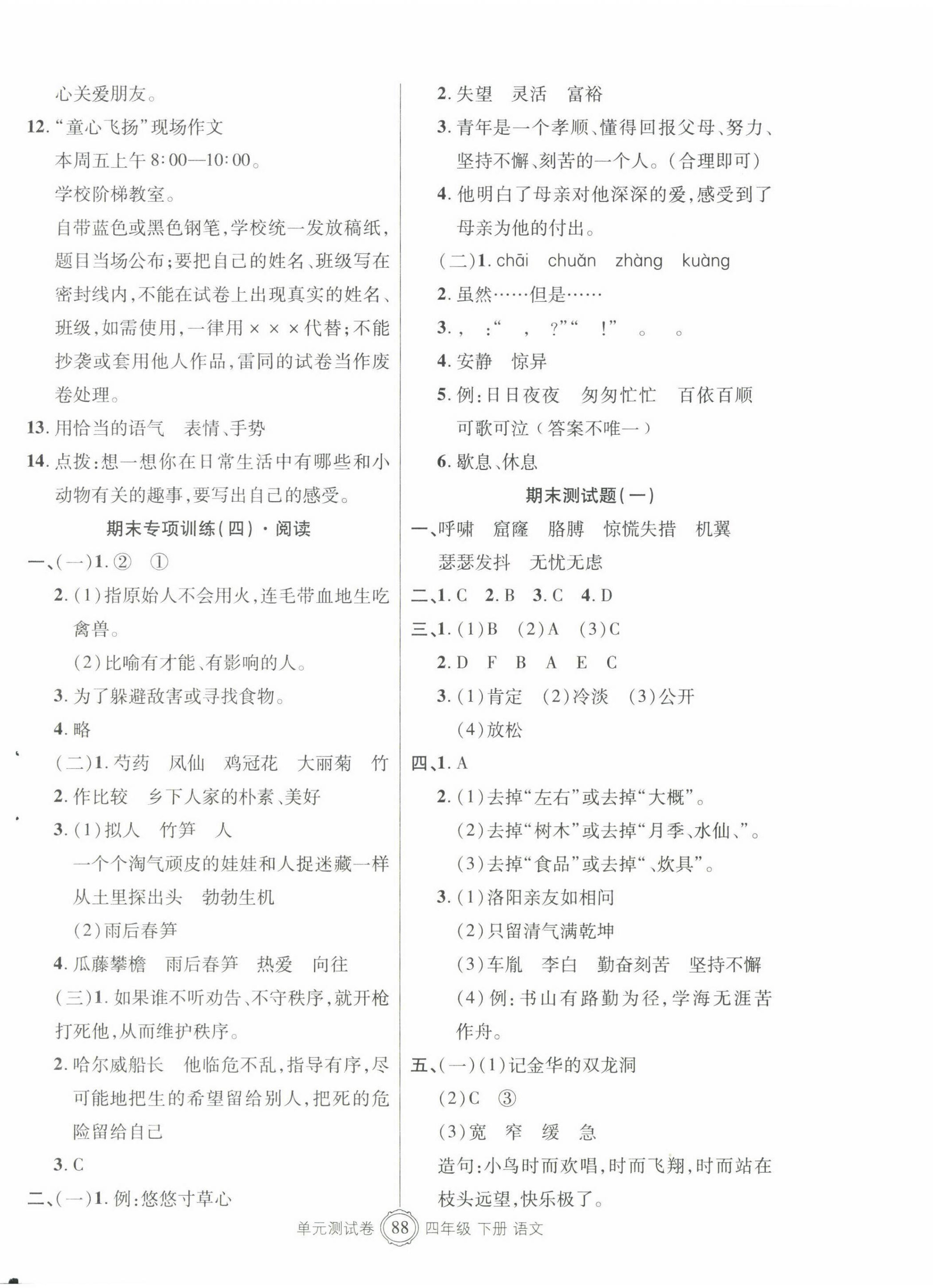 注:目前有些书本章节名称可能整理的还不是很完善,但都是按照顺序排列的,请同学们按照顺序仔细查找。练习册 2022年智慧通单元测试卷四年级语文下册人教版 答案主要是用来给同学们做完题方便对答案用的,请勿直接抄袭。