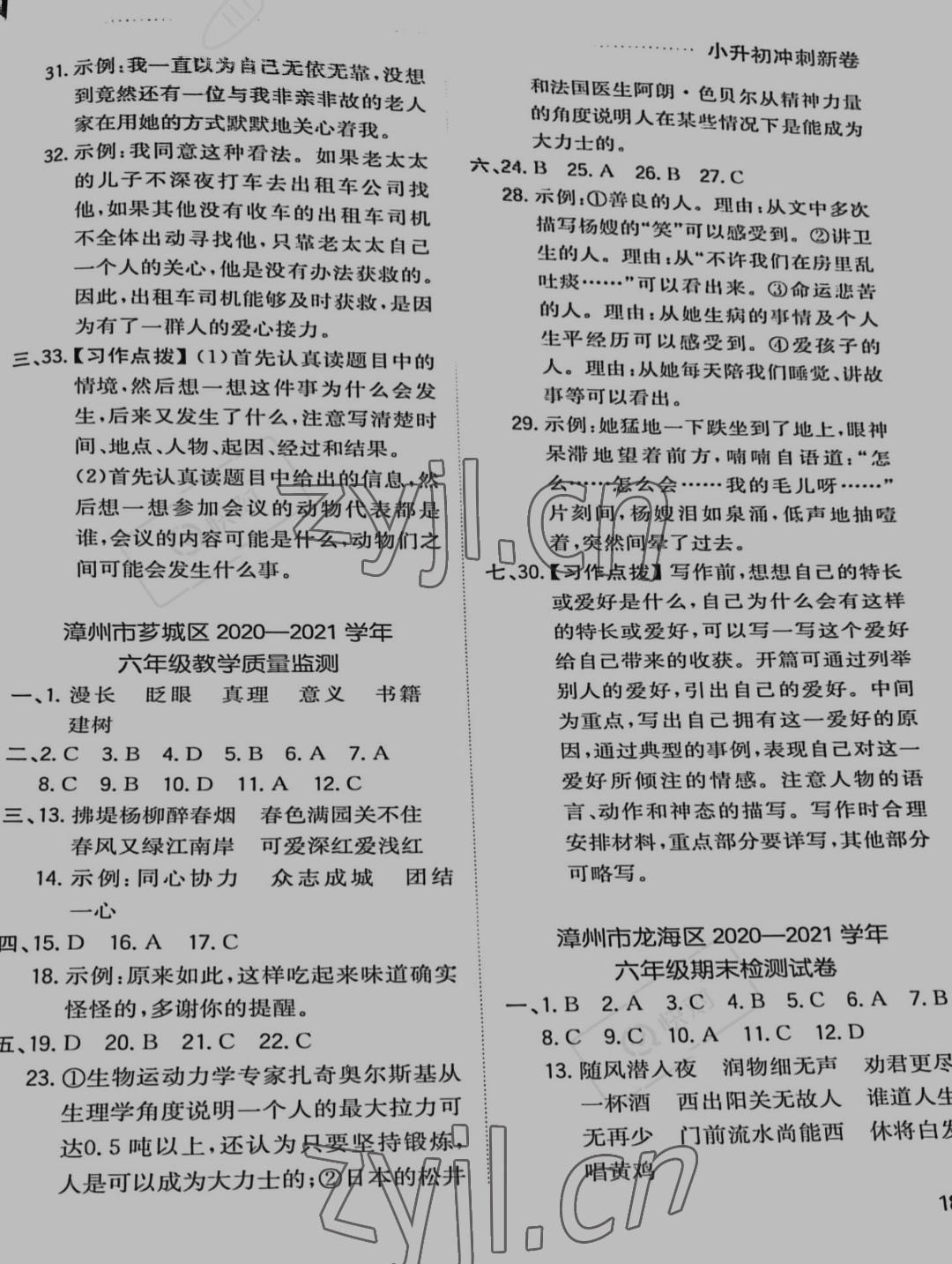 注:目前有些书本章节名称可能整理的还不是很完善,但都是按照顺序排列的,请同学们按照顺序仔细查找。练习册 2022年一本小升初冲刺新卷六年级语文福建专版 答案主要是用来给同学们做完题方便对答案用的,请勿直接抄袭。