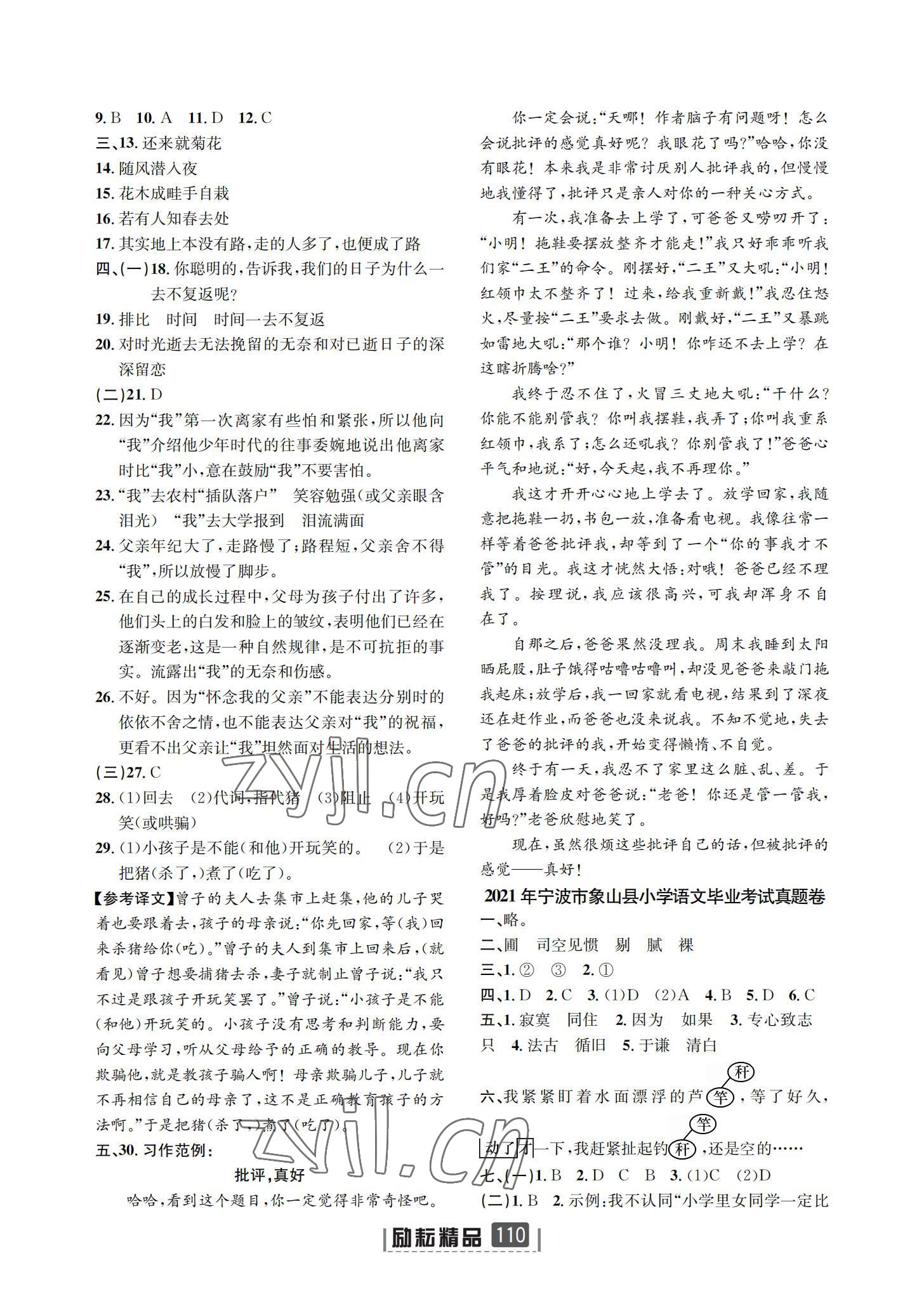 注:目前有些书本章节名称可能整理的还不是很完善,但都是按照顺序排列的,请同学们按照顺序仔细查找。练习册 2022年励耘小考助跑卷语文宁波专版 答案主要是用来给同学们做完题方便对答案用的,请勿直接抄袭。