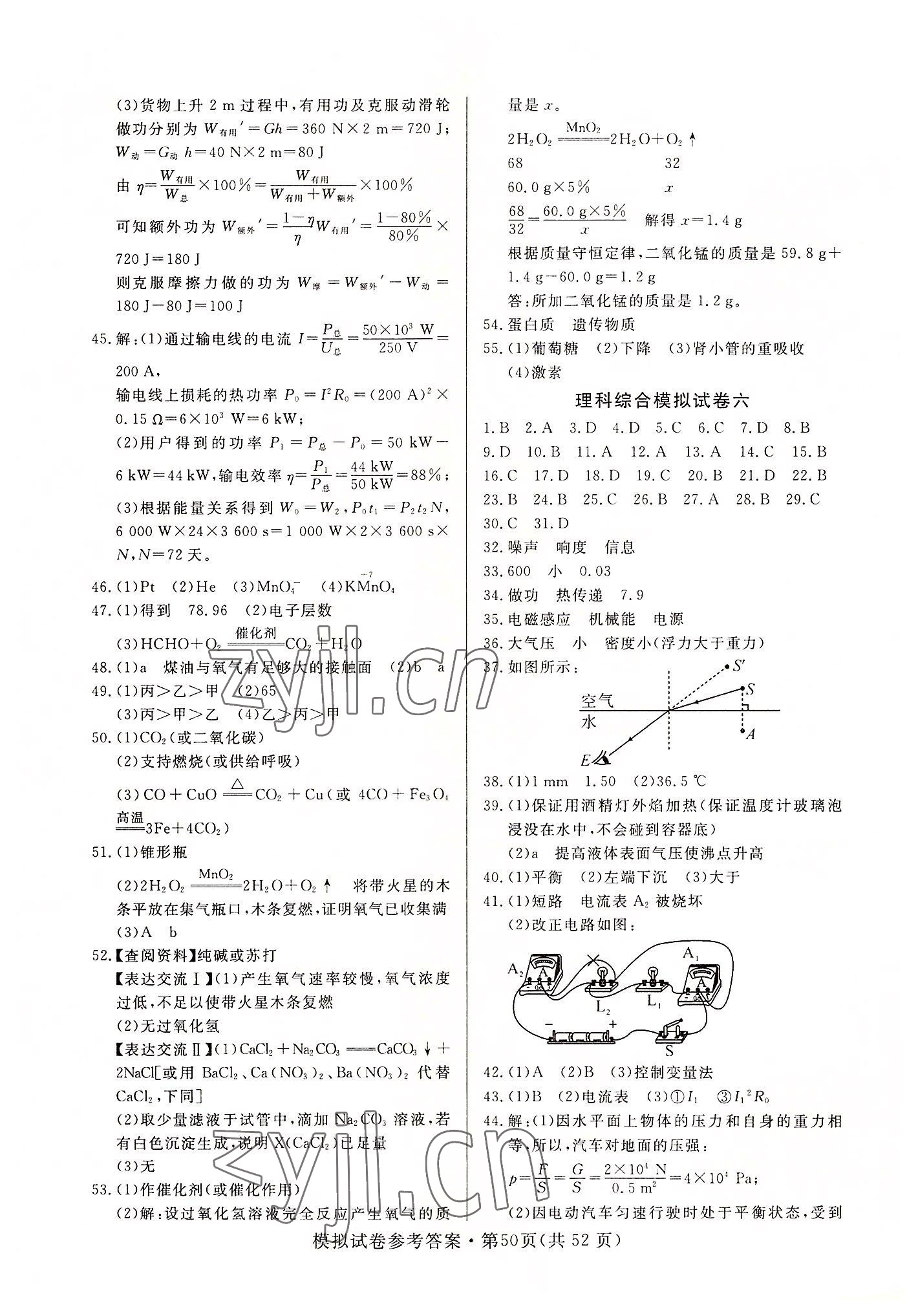 2022年全优标准卷中考冲冠理综中考人教版