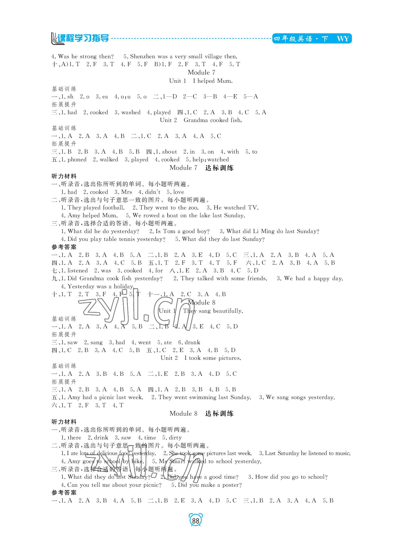 注:目前有些书本章节名称可能整理的还不是很完善,但都是按照顺序排列的,请同学们按照顺序仔细查找。练习册 2022年课程学习指导南方出版社四年级英语下册外研版 答案主要是用来给同学们做完题方便对答案用的,请勿直接抄袭。