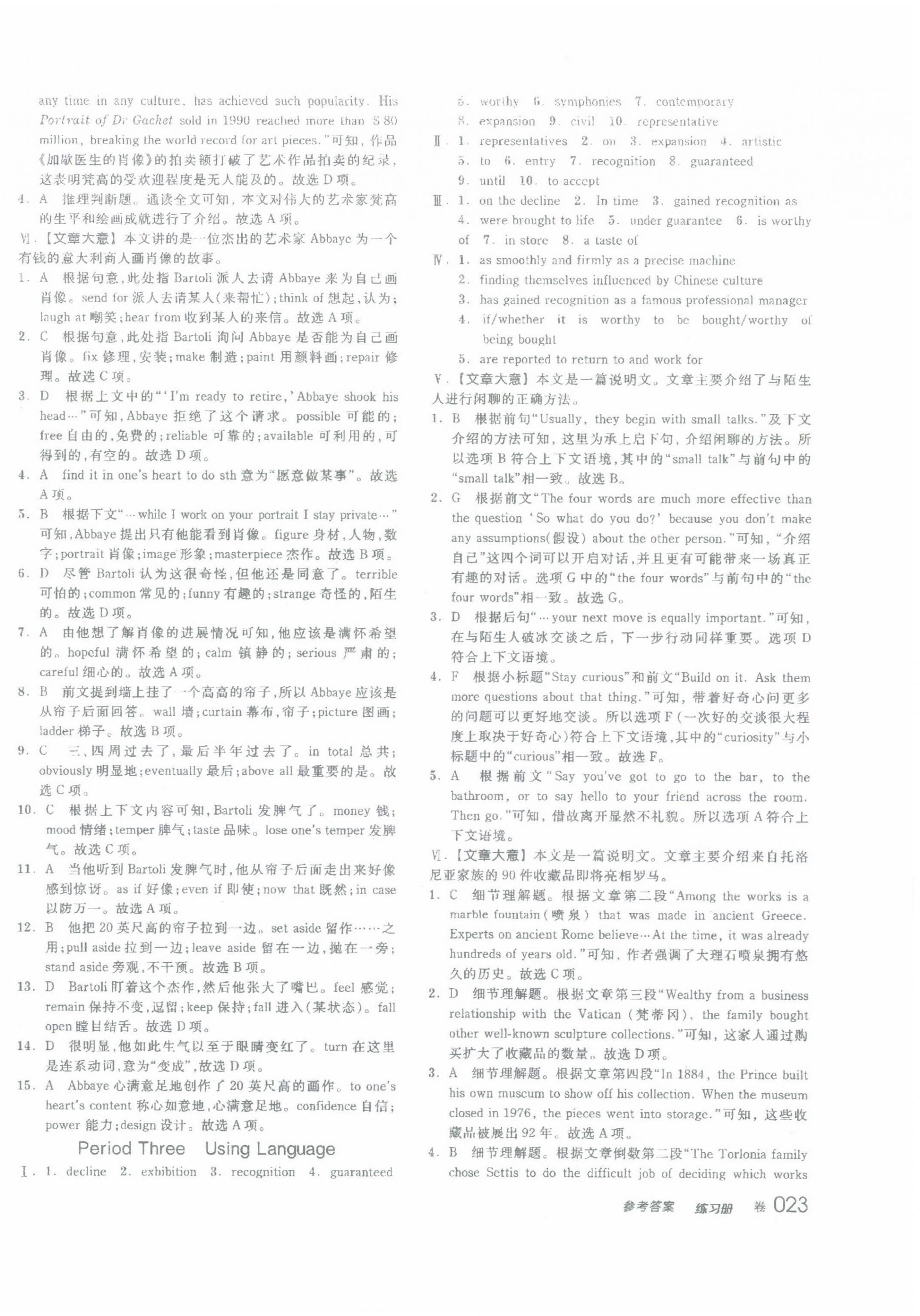 注:目前有些书本章节名称可能整理的还不是很完善,但都是按照顺序排列的,请同学们按照顺序仔细查找。练习册 2022年全品学练考高中英语选择性必修第三册人教版 答案主要是用来给同学们做完题方便对答案用的,请勿直接抄袭。