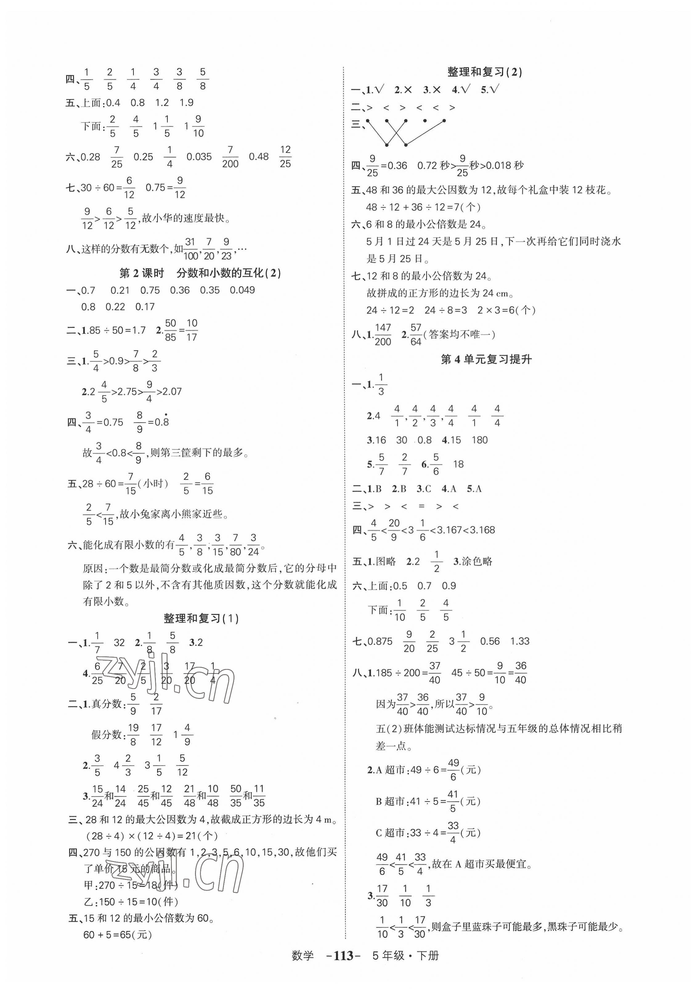 2022年状元成才路创优作业100分课后服务版五年级数学下册人教版