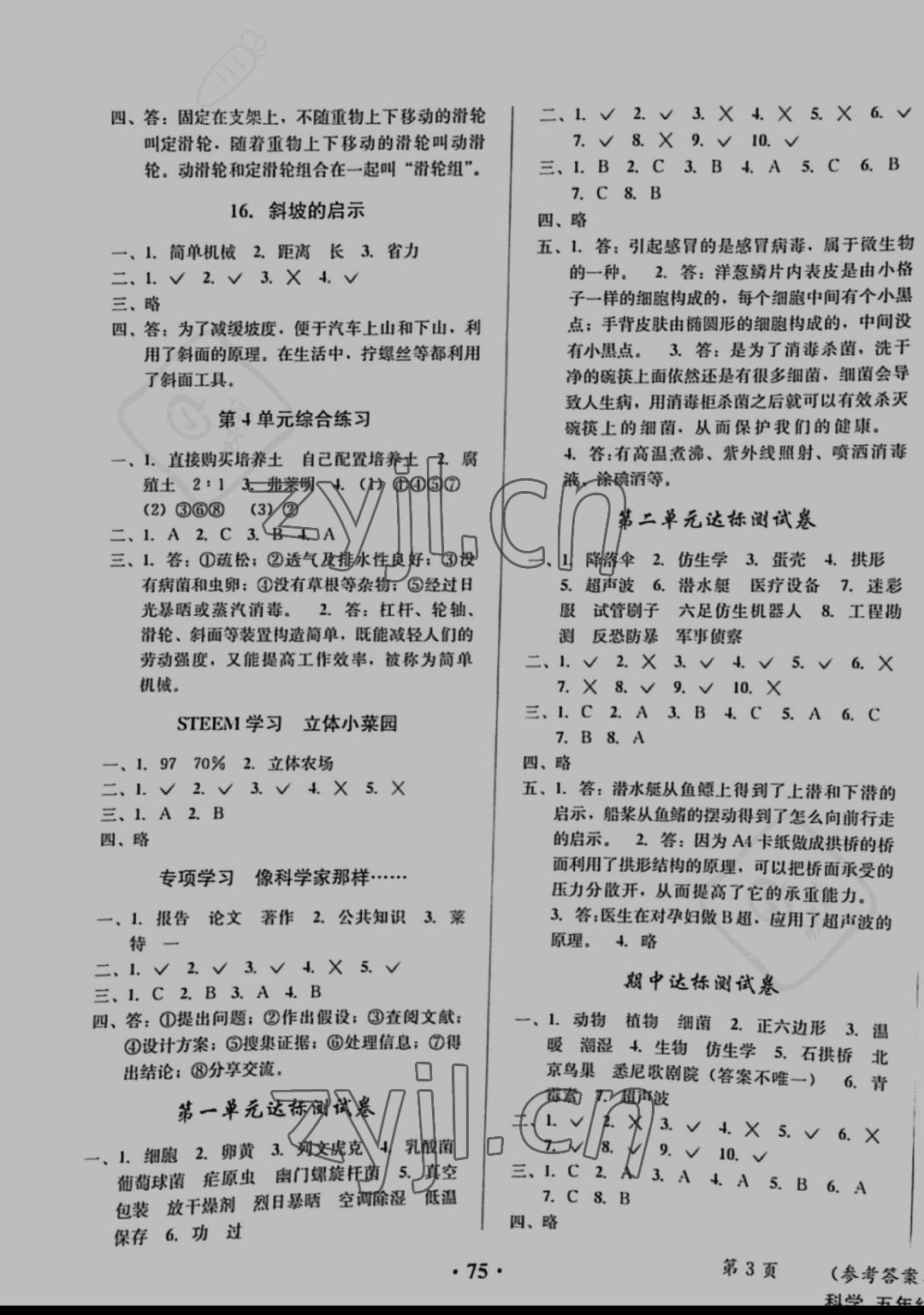 注:目前有些书本章节名称可能整理的还不是很完善,但都是按照顺序排列的,请同学们按照顺序仔细查找。练习册 2022年小学综合素质测评五年级科学下册苏教版 答案主要是用来给同学们做完题方便对答案用的,请勿直接抄袭。