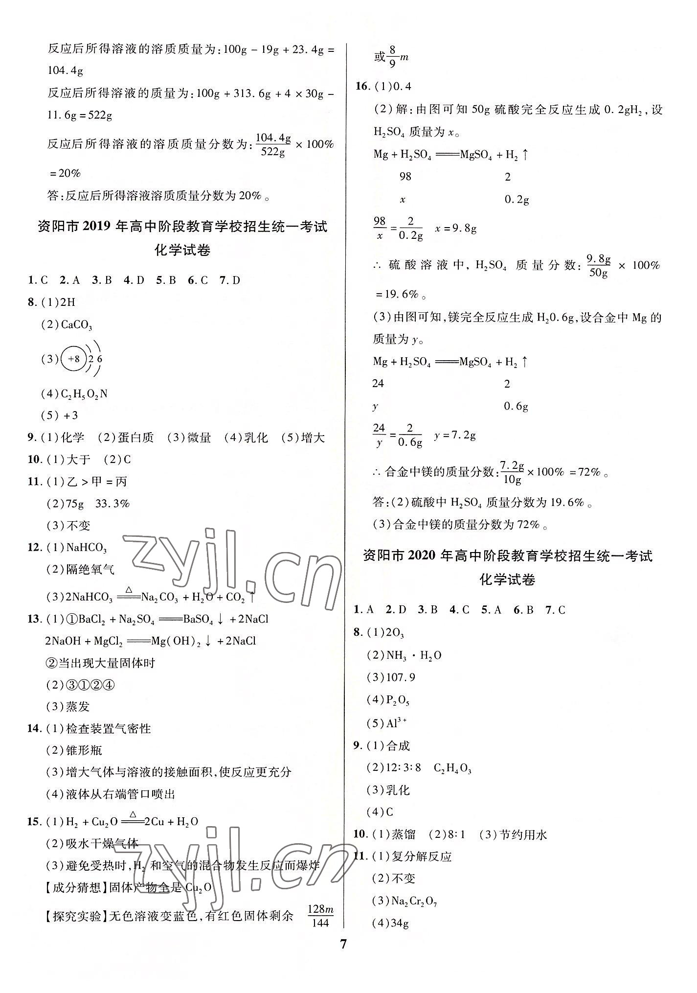 注:目前有些书本章节名称可能整理的还不是很完善,但都是按照顺序排列的,请同学们按照顺序仔细查找。练习册 2022年名师点拨中考导航化学资阳专版 答案主要是用来给同学们做完题方便对答案用的,请勿直接抄袭。