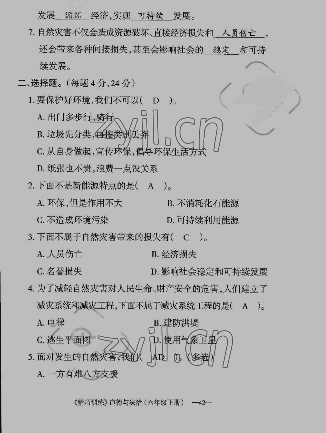 注:目前有些书本章节名称可能整理的还不是很完善,但都是按照顺序排列的,请同学们按照顺序仔细查找。练习册 2022年学生课程精巧训练六年级道德与法治下册人教版 答案主要是用来给同学们做完题方便对答案用的,请勿直接抄袭。