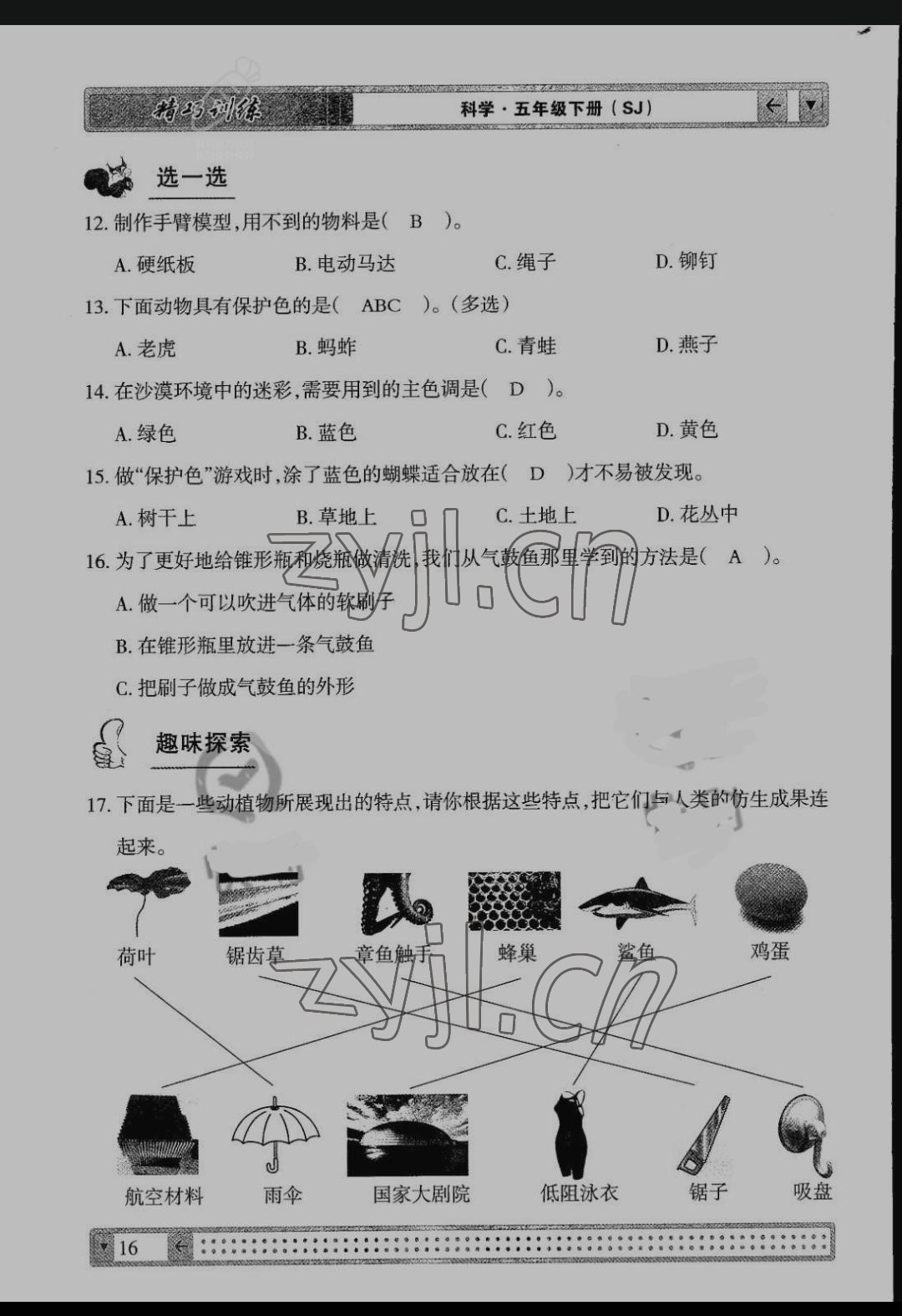 注:目前有些书本章节名称可能整理的还不是很完善,但都是按照顺序排列的,请同学们按照顺序仔细查找。练习册 2022年学生课程精巧训练五年级科学下册苏教版 答案主要是用来给同学们做完题方便对答案用的,请勿直接抄袭。