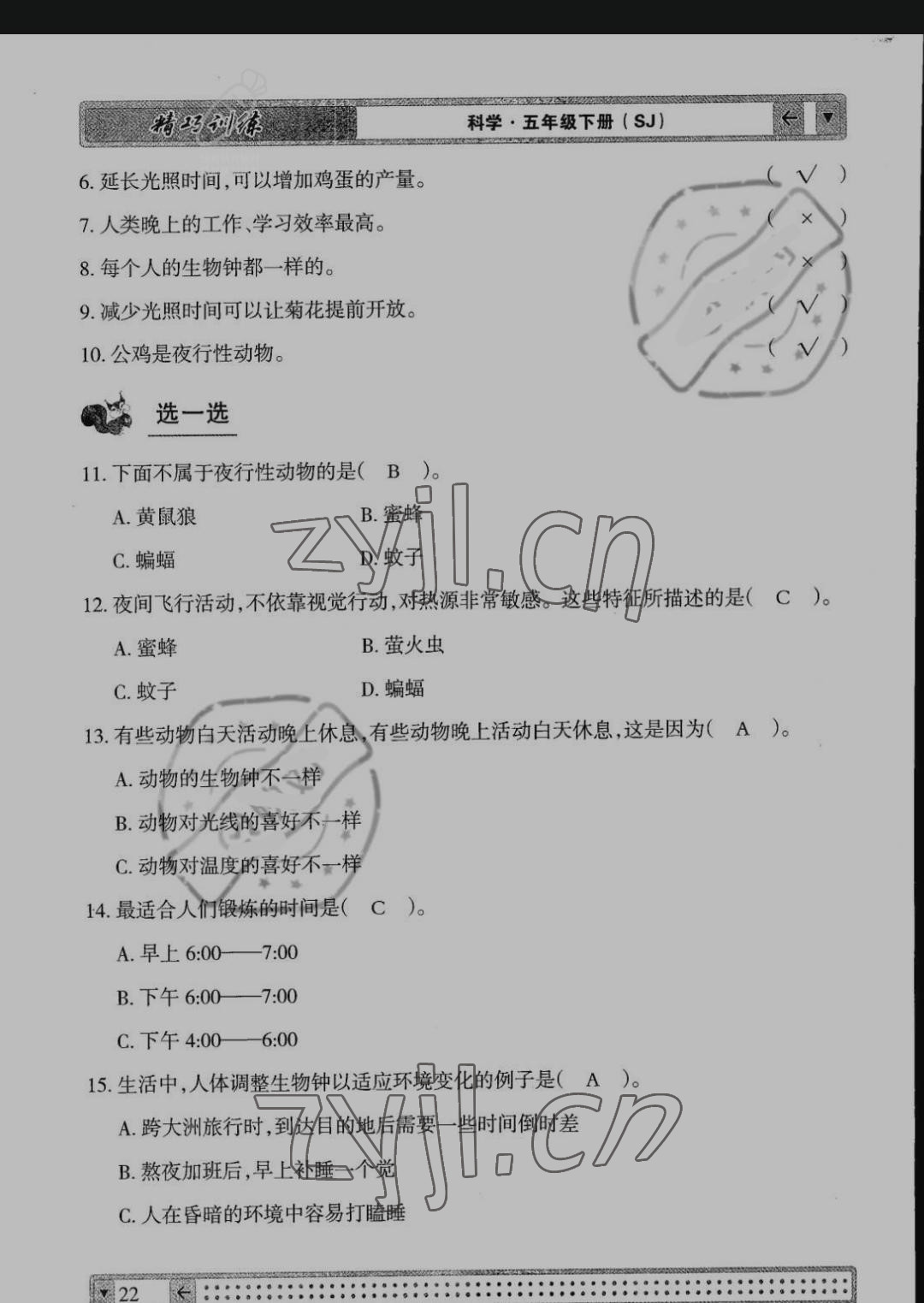 注:目前有些书本章节名称可能整理的还不是很完善,但都是按照顺序排列的,请同学们按照顺序仔细查找。练习册 2022年学生课程精巧训练五年级科学下册苏教版 答案主要是用来给同学们做完题方便对答案用的,请勿直接抄袭。