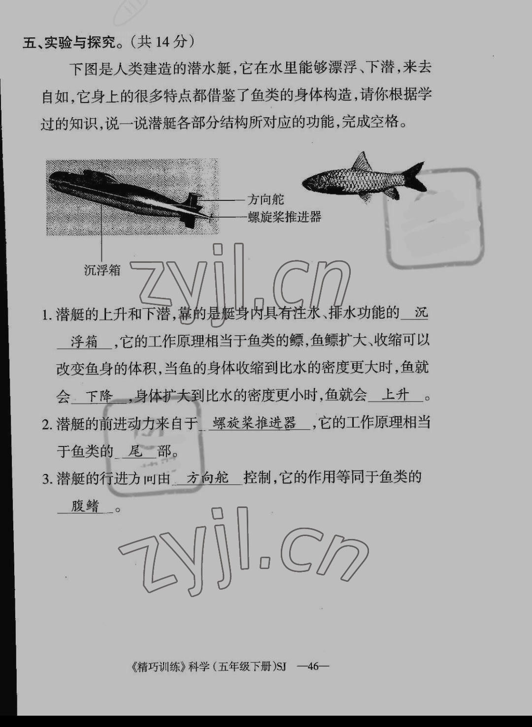 注:目前有些书本章节名称可能整理的还不是很完善,但都是按照顺序排列的,请同学们按照顺序仔细查找。练习册 2022年学生课程精巧训练五年级科学下册苏教版 答案主要是用来给同学们做完题方便对答案用的,请勿直接抄袭。