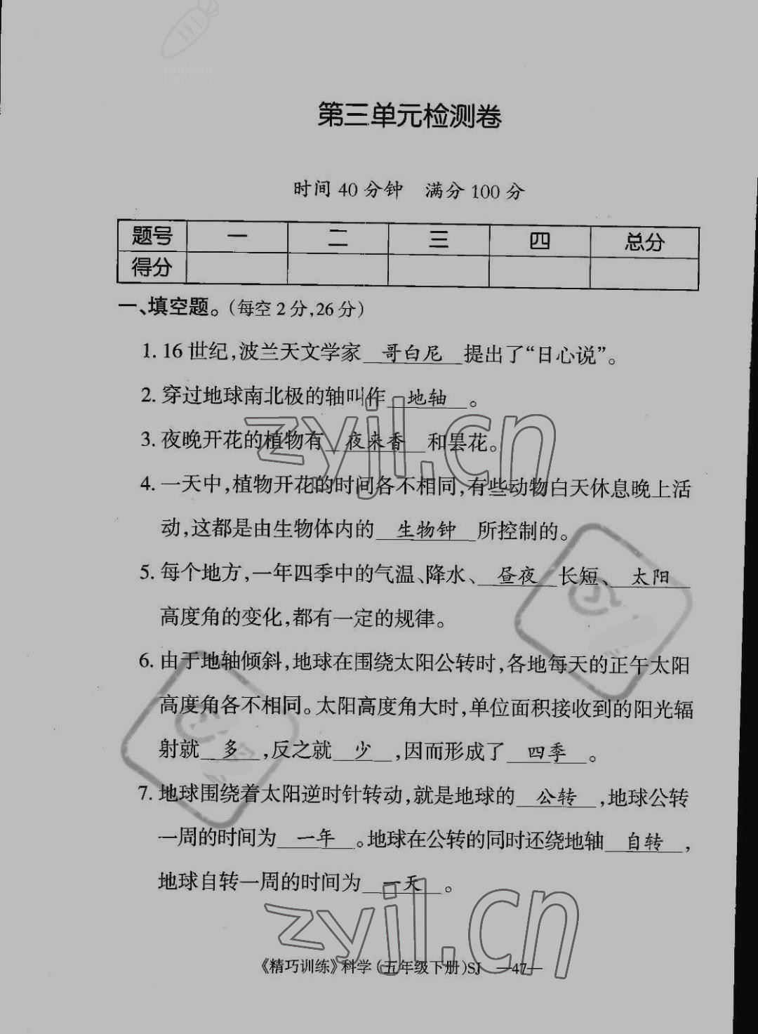 注:目前有些书本章节名称可能整理的还不是很完善,但都是按照顺序排列的,请同学们按照顺序仔细查找。练习册 2022年学生课程精巧训练五年级科学下册苏教版 答案主要是用来给同学们做完题方便对答案用的,请勿直接抄袭。