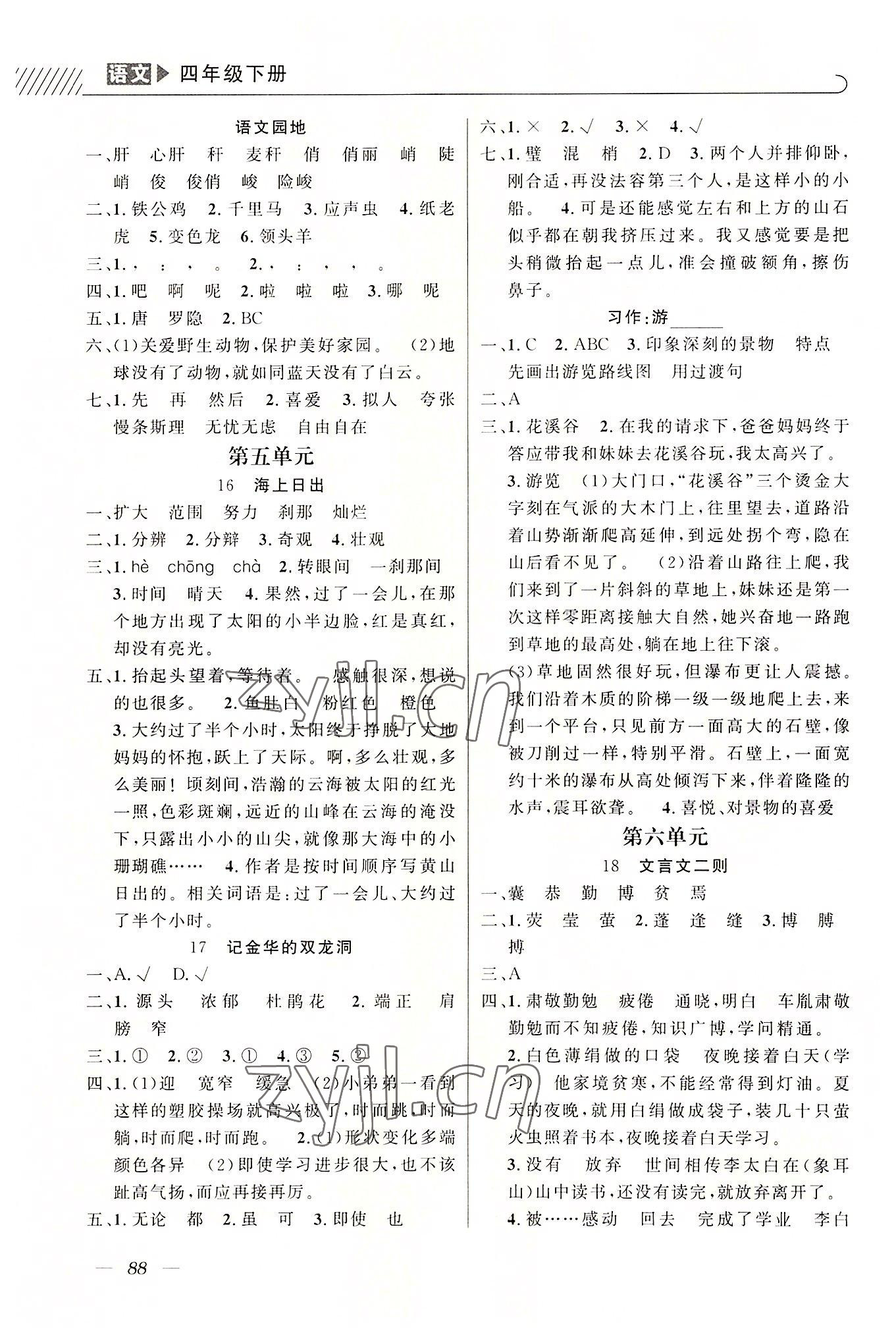 《2022年一线名师全优提分作业四年级语文下册人教版》