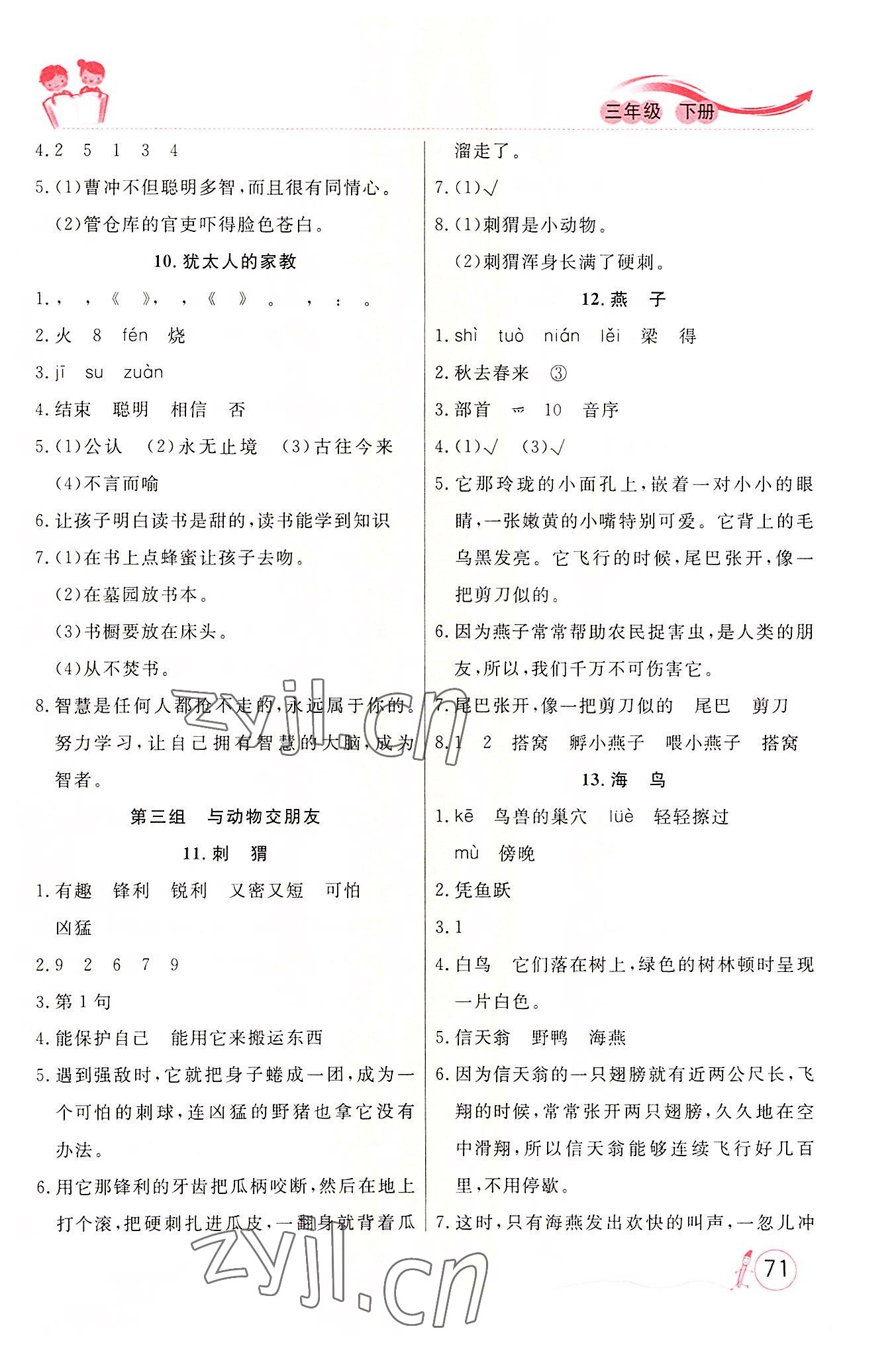 注:目前有些书本章节名称可能整理的还不是很完善,但都是按照顺序排列的,请同学们按照顺序仔细查找。练习册 2022年小学同步语文阅读拓展三年级语文下册人教版 答案主要是用来给同学们做完题方便对答案用的,请勿直接抄袭。