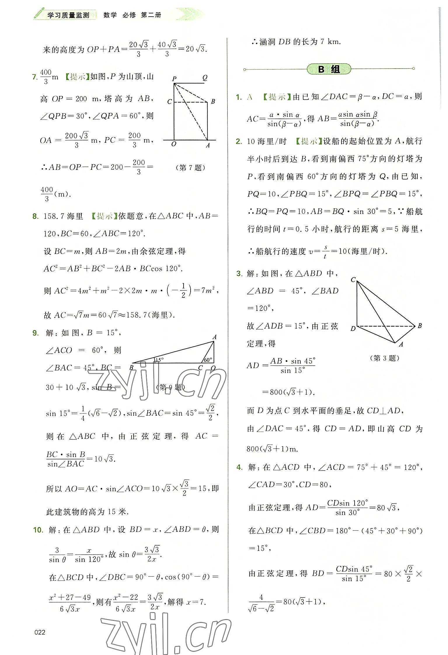 注:目前有些书本章节名称可能整理的还不是很完善,但都是按照顺序排列的,请同学们按照顺序仔细查找。练习册 2022年学习质量监测高中数学必修第二册人教版 答案主要是用来给同学们做完题方便对答案用的,请勿直接抄袭。