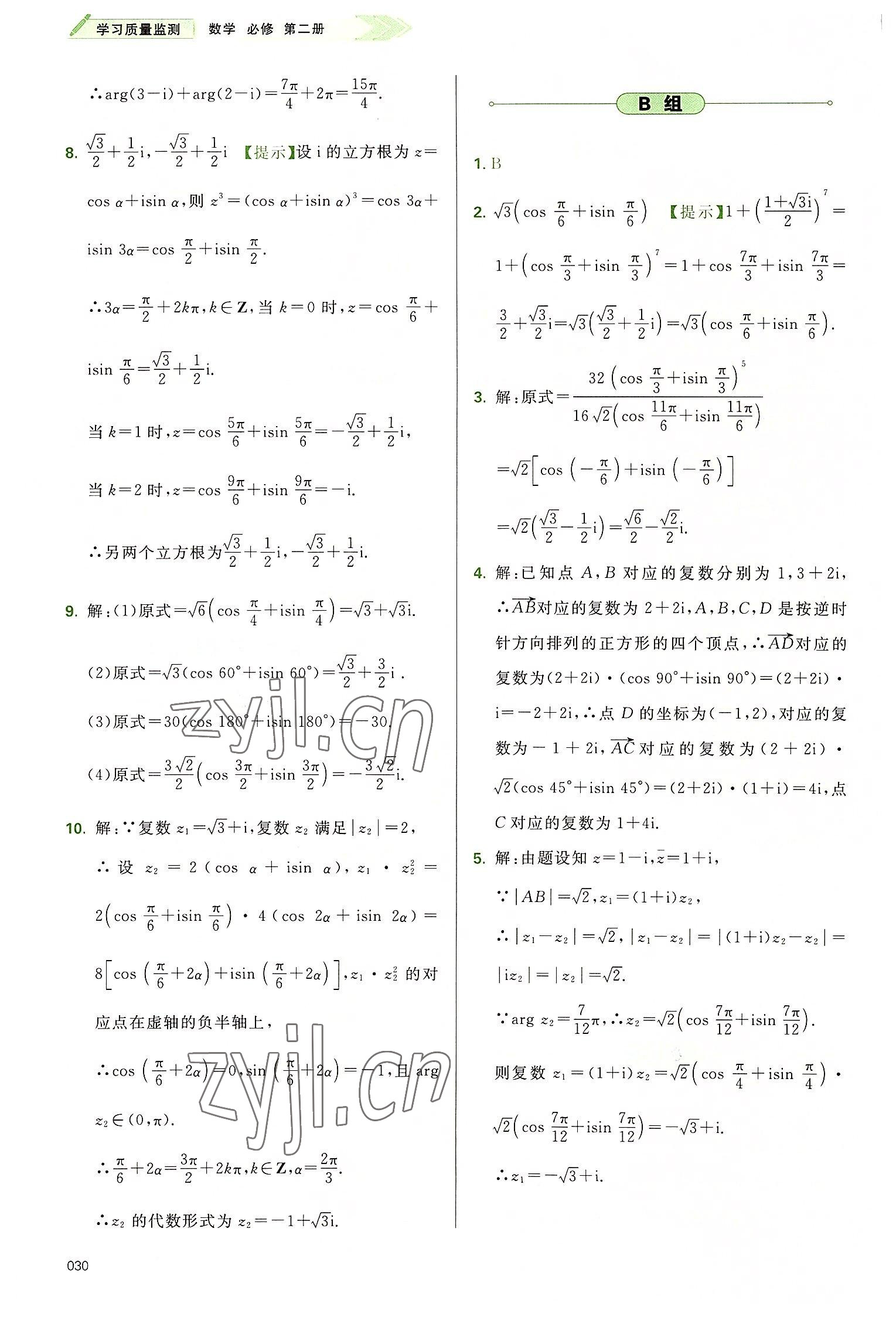 注:目前有些书本章节名称可能整理的还不是很完善,但都是按照顺序排列的,请同学们按照顺序仔细查找。练习册 2022年学习质量监测高中数学必修第二册人教版 答案主要是用来给同学们做完题方便对答案用的,请勿直接抄袭。
