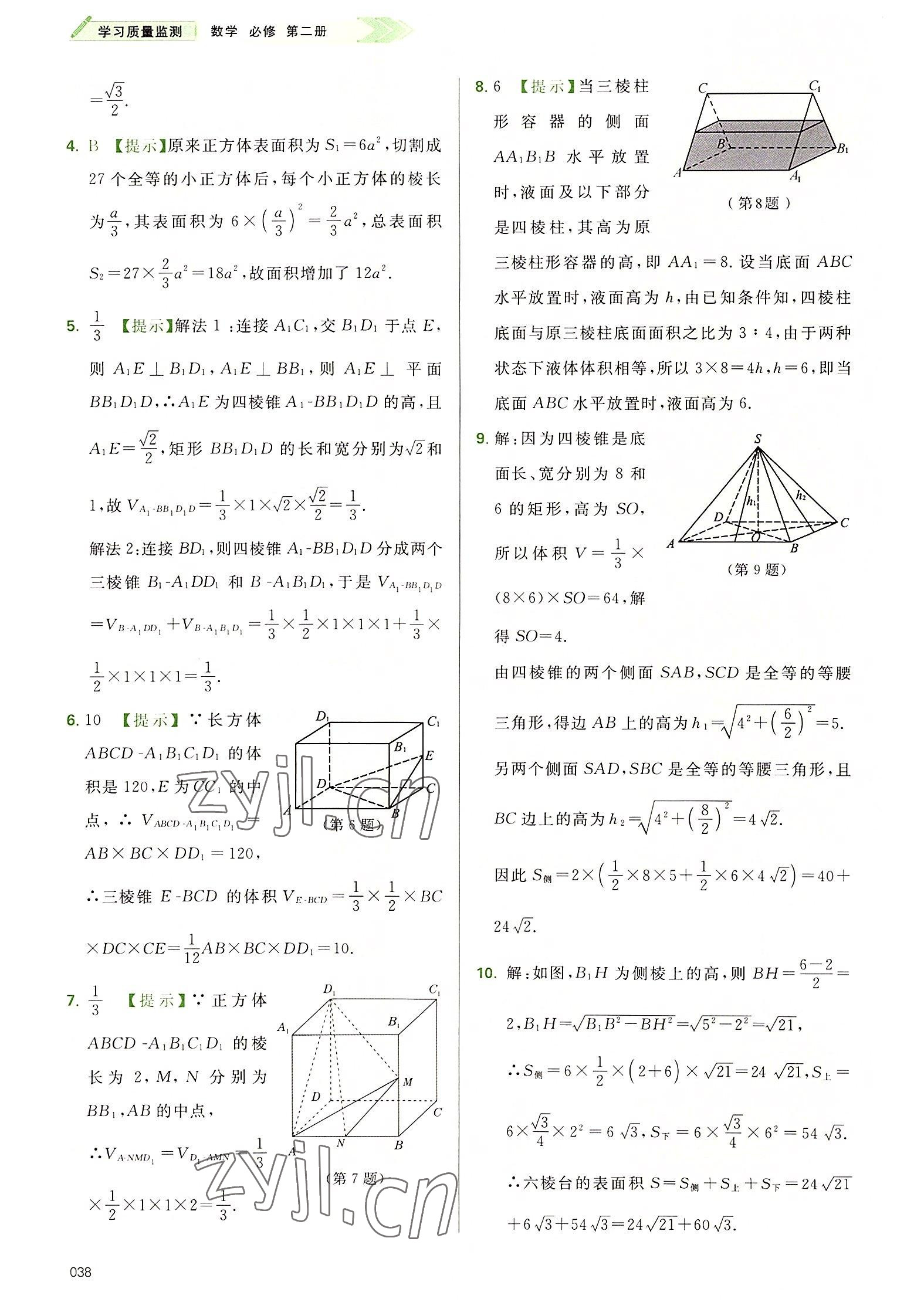 注:目前有些书本章节名称可能整理的还不是很完善,但都是按照顺序排列的,请同学们按照顺序仔细查找。练习册 2022年学习质量监测高中数学必修第二册人教版 答案主要是用来给同学们做完题方便对答案用的,请勿直接抄袭。