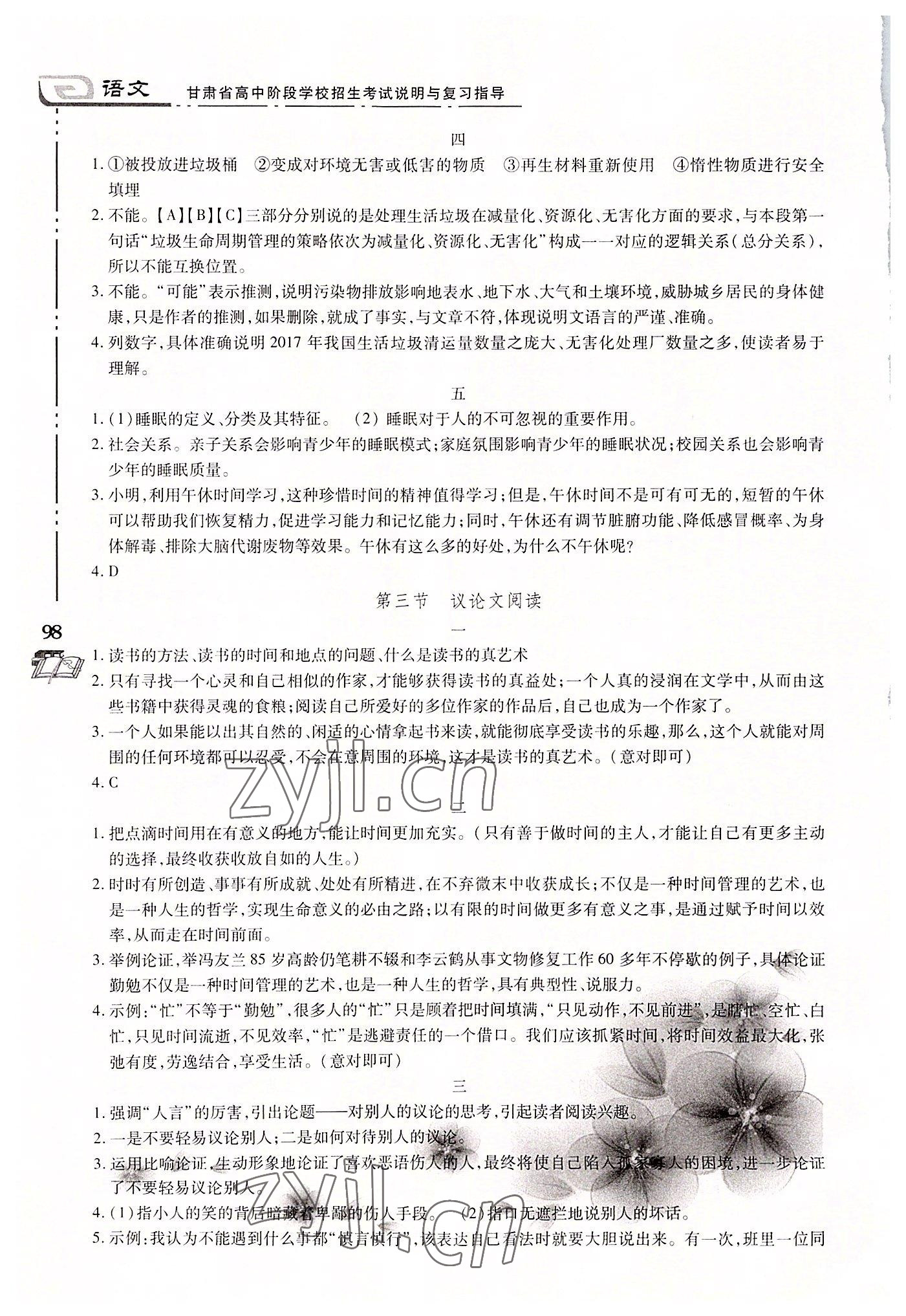 注:目前有些书本章节名称可能整理的还不是很完善,但都是按照顺序排列的,请同学们按照顺序仔细查找。练习册 2022年甘肃省高中阶段学校招生考试说明与复习指导语文 答案主要是用来给同学们做完题方便对答案用的,请勿直接抄袭。