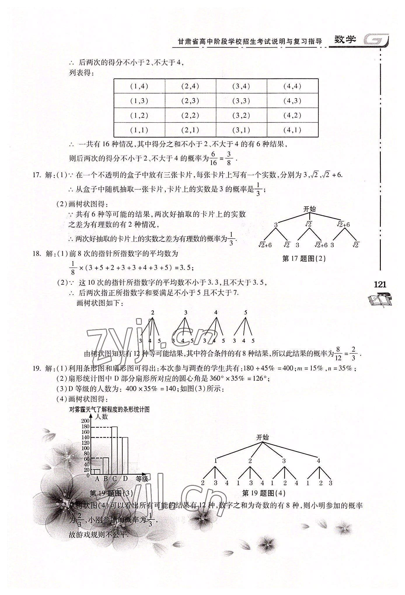 注:目前有些书本章节名称可能整理的还不是很完善,但都是按照顺序排列的,请同学们按照顺序仔细查找。练习册 2022年甘肃省高中阶段学校招生考试说明与复习指导数学 答案主要是用来给同学们做完题方便对答案用的,请勿直接抄袭。