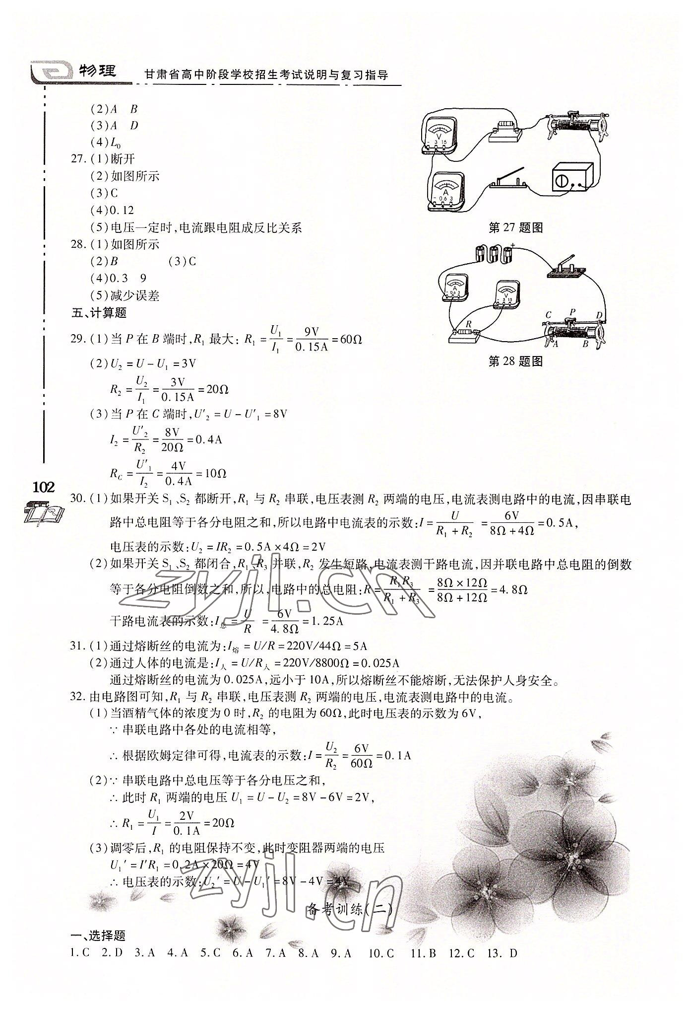 2022年甘肃省高中阶段学校招生考试说明与复习指导物理