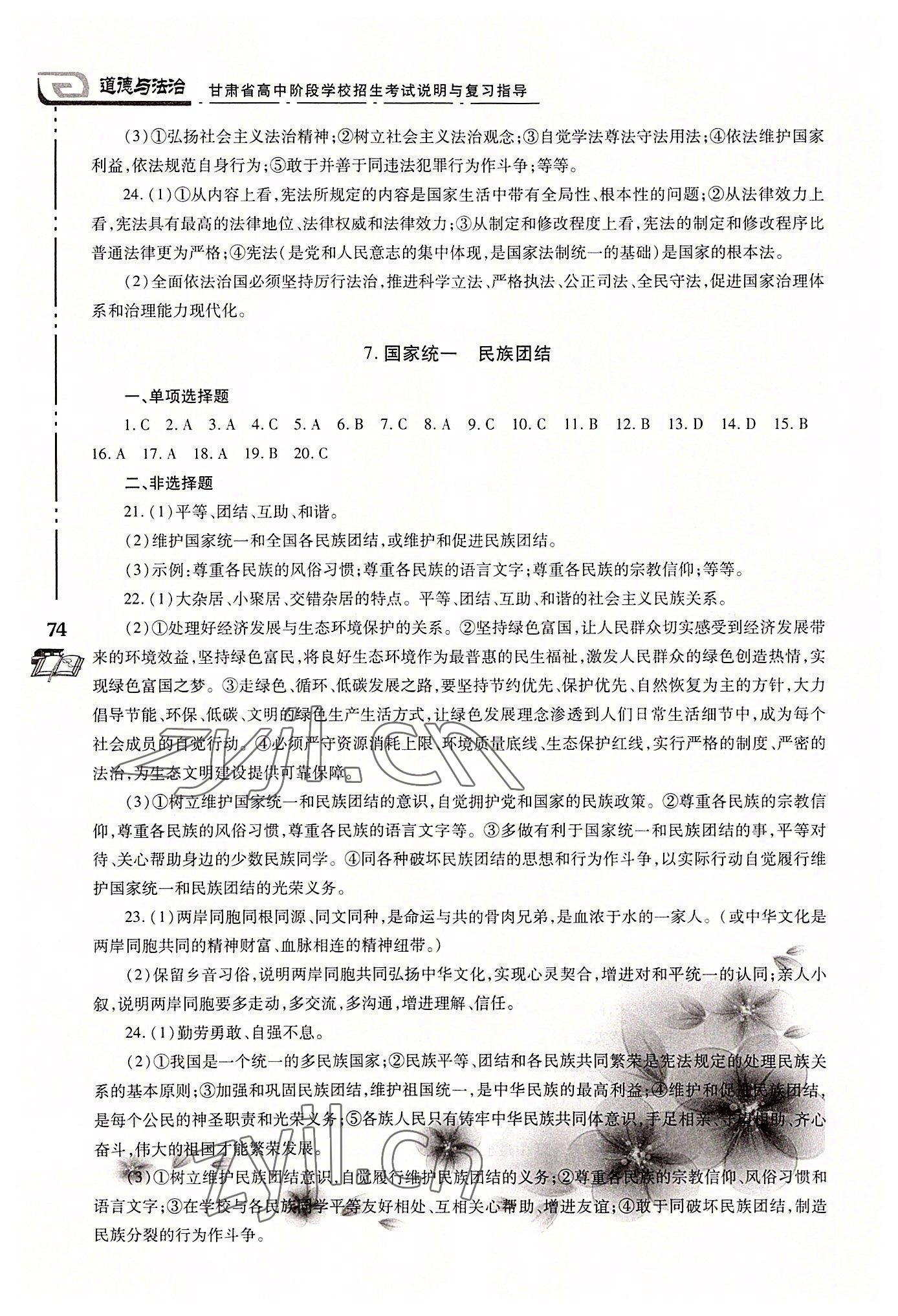 注:目前有些书本章节名称可能整理的还不是很完善,但都是按照顺序排列的,请同学们按照顺序仔细查找。练习册 2022年甘肃省高中阶段学校招生考试说明与复习指导道德与法治 答案主要是用来给同学们做完题方便对答案用的,请勿直接抄袭。