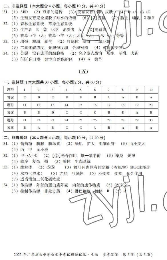 注:目前有些书本章节名称可能整理的还不是很完善,但都是按照顺序排列的,请同学们按照顺序仔细查找。练习册 2022年广东省初中学业水平考试模拟试卷生物 答案主要是用来给同学们做完题方便对答案用的,请勿直接抄袭。