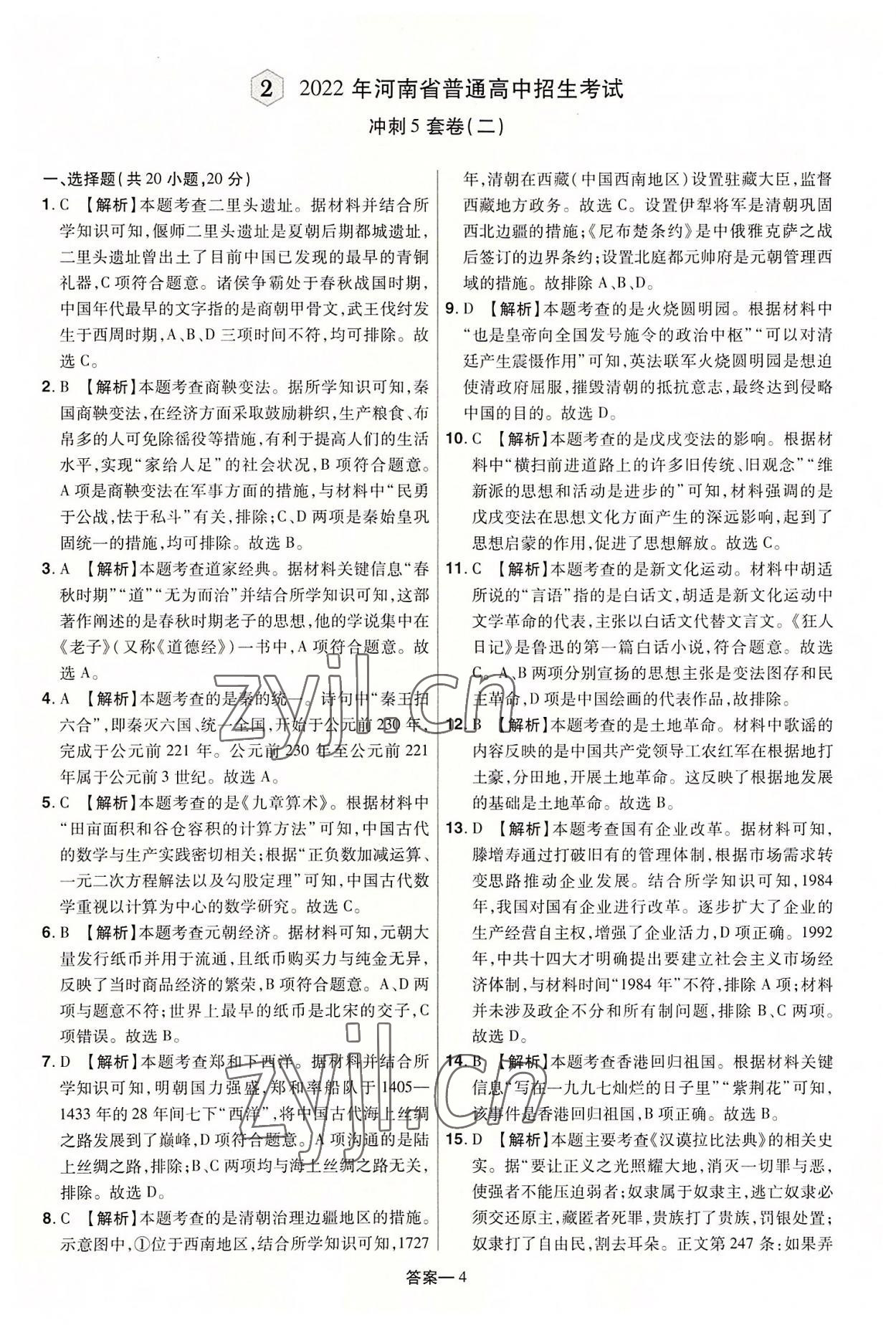 《2022年领扬中考冲刺5套卷历史河南专版》