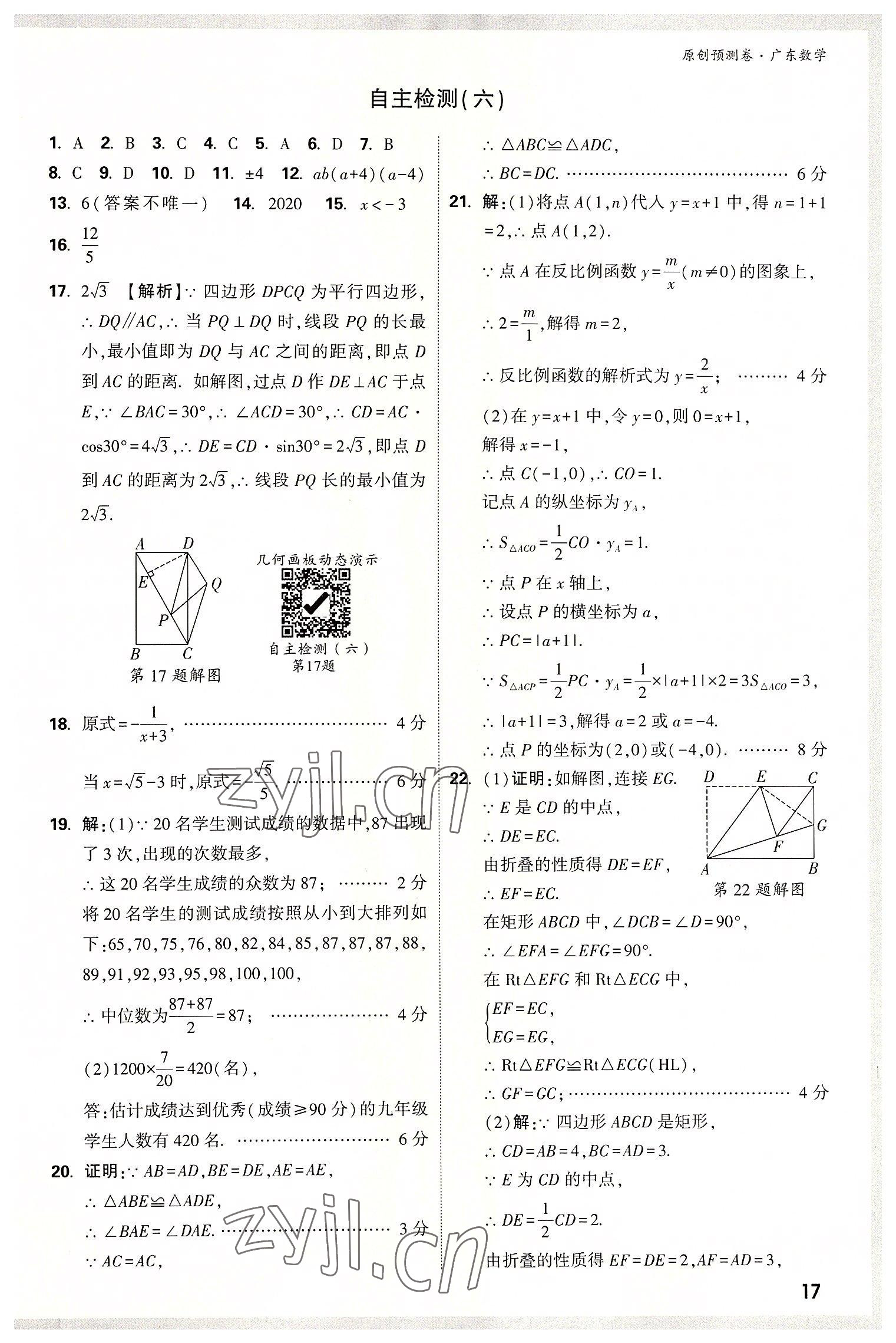 注:目前有些书本章节名称可能整理的还不是很完善,但都是按照顺序排列的,请同学们按照顺序仔细查找。练习册 2022年万唯中考预测卷数学广东专版 答案主要是用来给同学们做完题方便对答案用的,请勿直接抄袭。